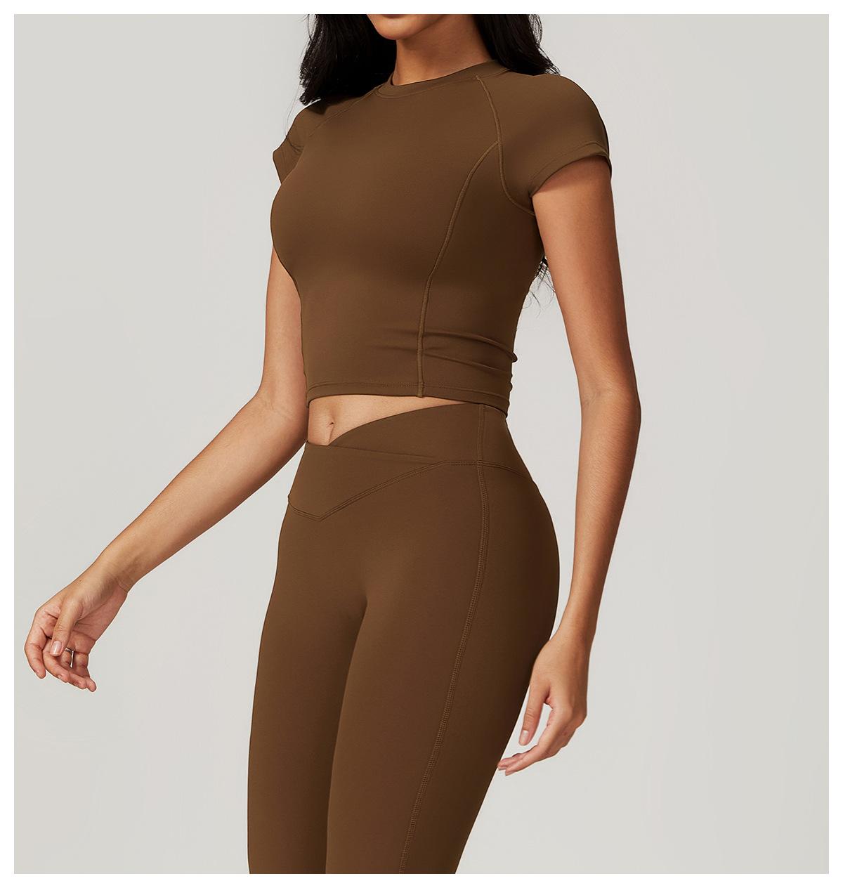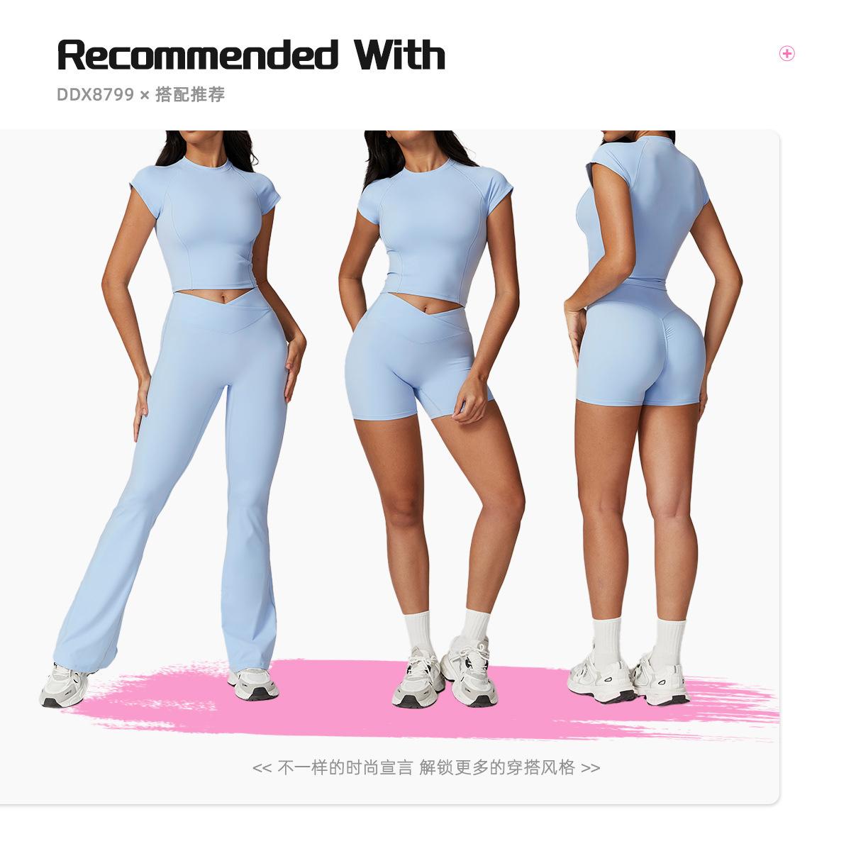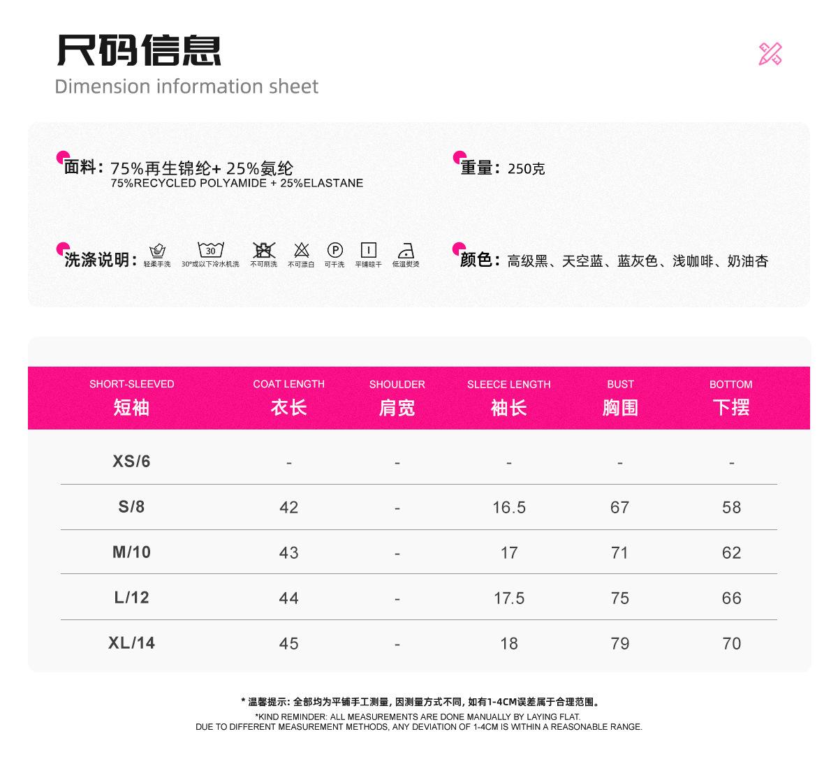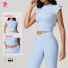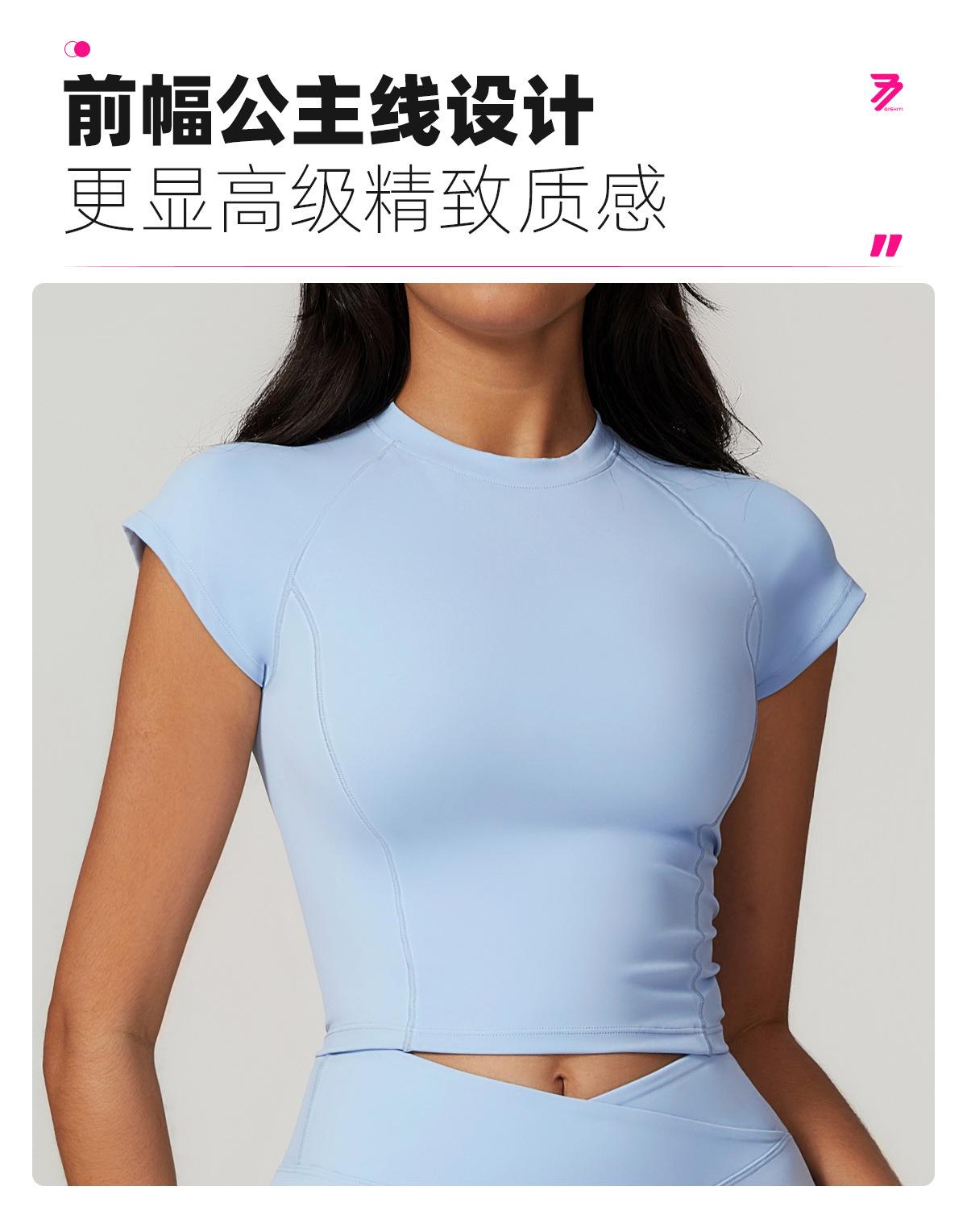 Regeneración Ecológica Alta Resistencia Manga Corta Pequeña para Correr Fitness Camiseta Deportiva de Manga Corta para Mujer Ajustada Secado Rápido Ropa de Yoga 8799