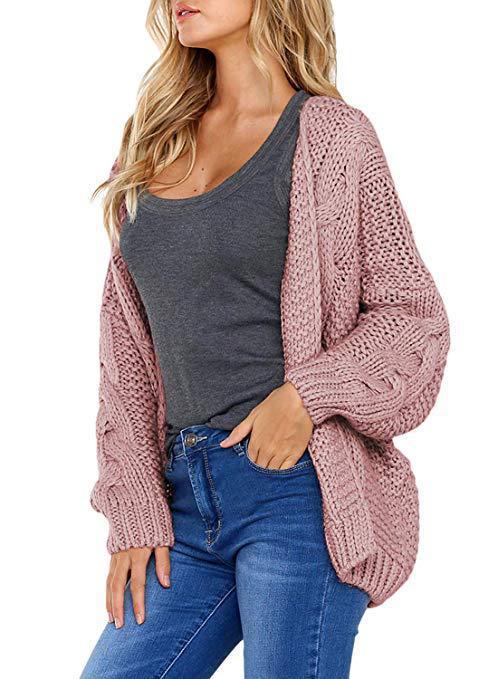 Nuevo cárdigan trenzado de Amazon de venta caliente para comercio exterior, estilo europeo y americano, color sólido, punto grueso, holgado, talla grande, suéter para mujer