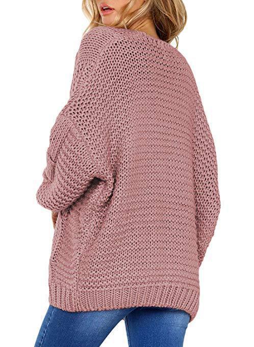 Comercio Exterior Nuevo Amazon Cárdigan Caliente Twist Estilo Europeo y Americano Color Sólido Aguja Gruesa Suelto Talla Grande Suéter de Punto para Mujer