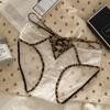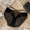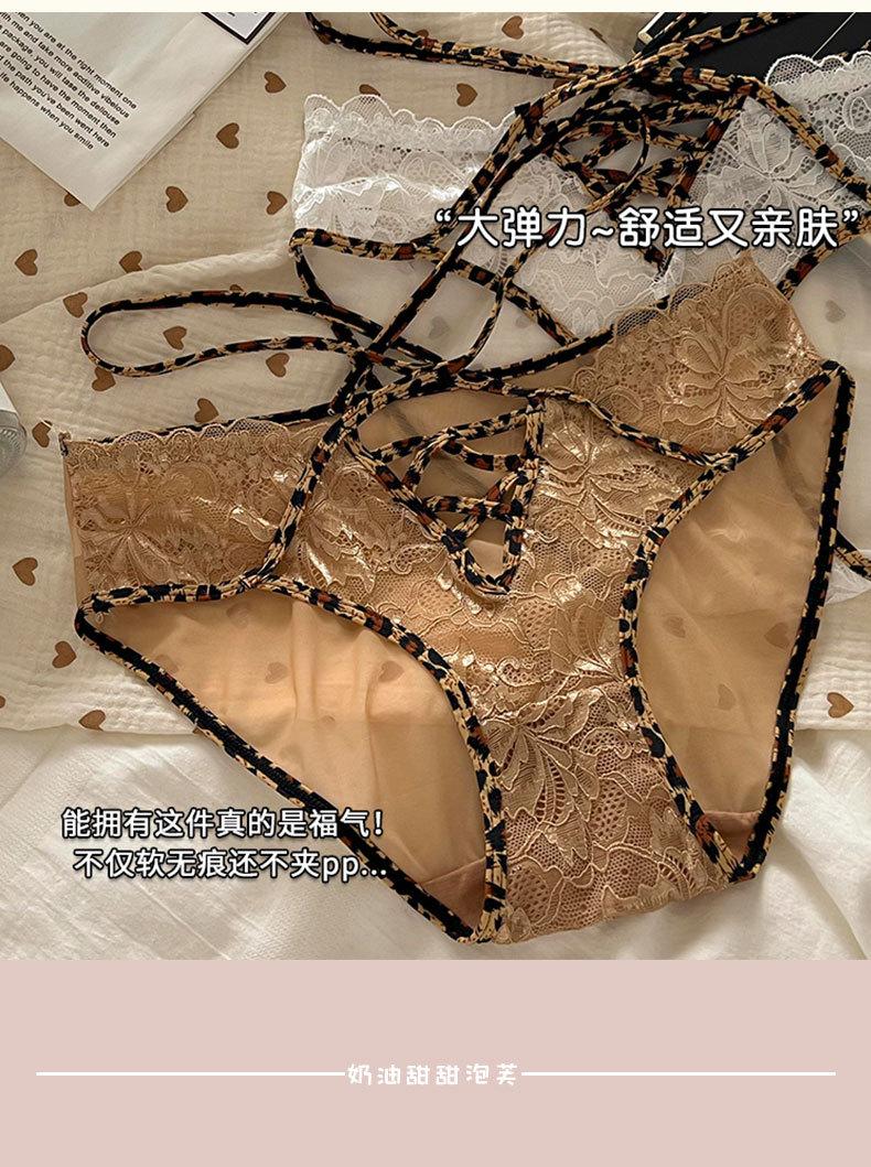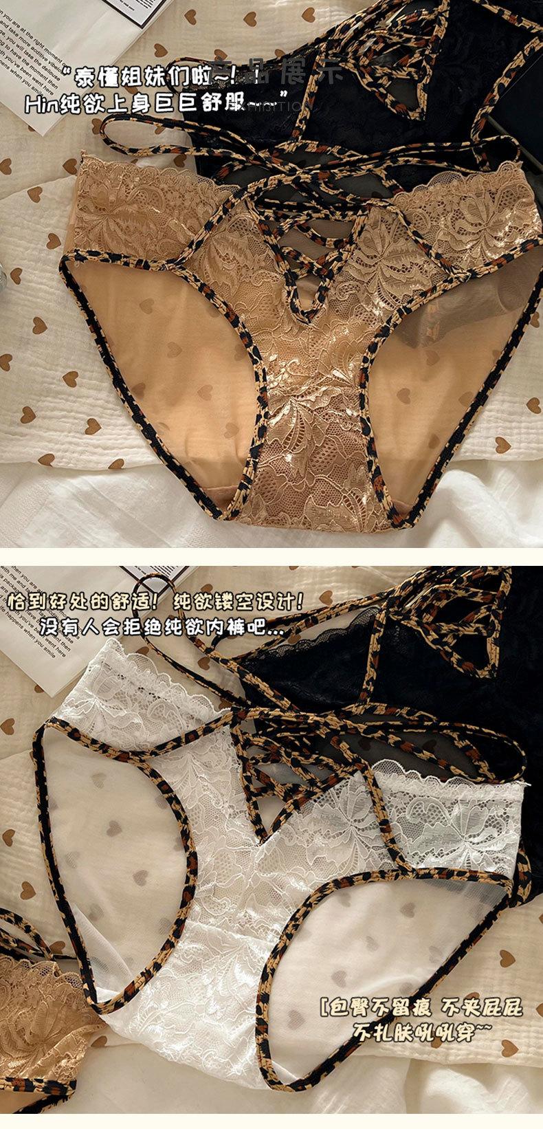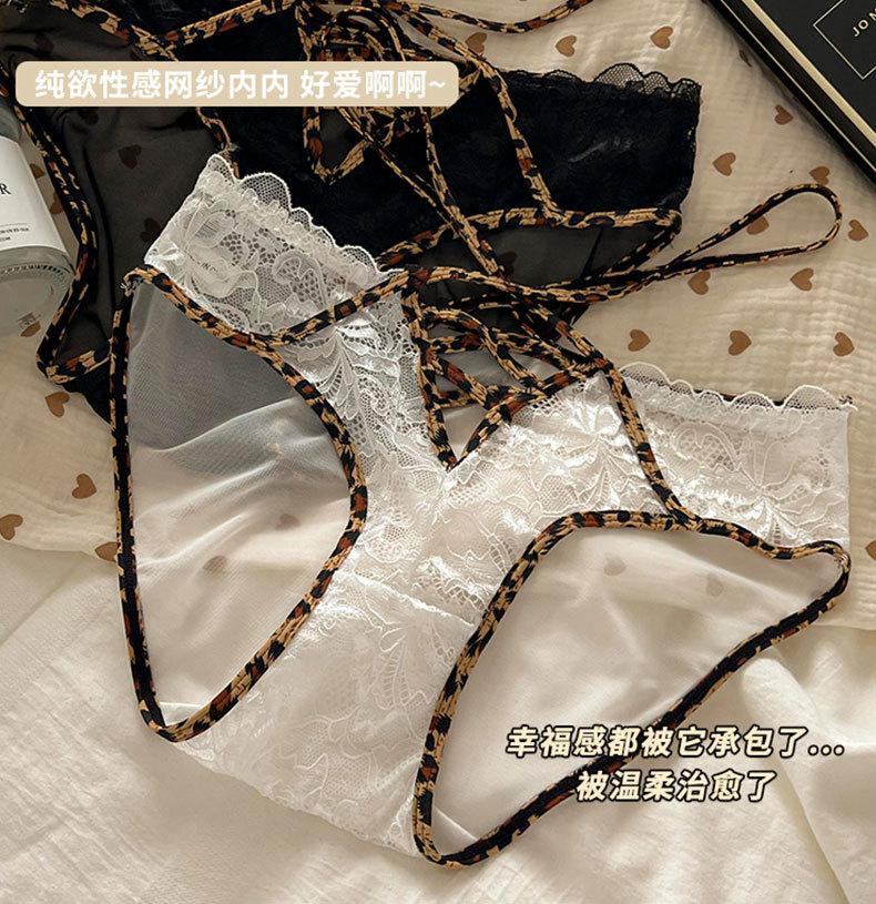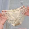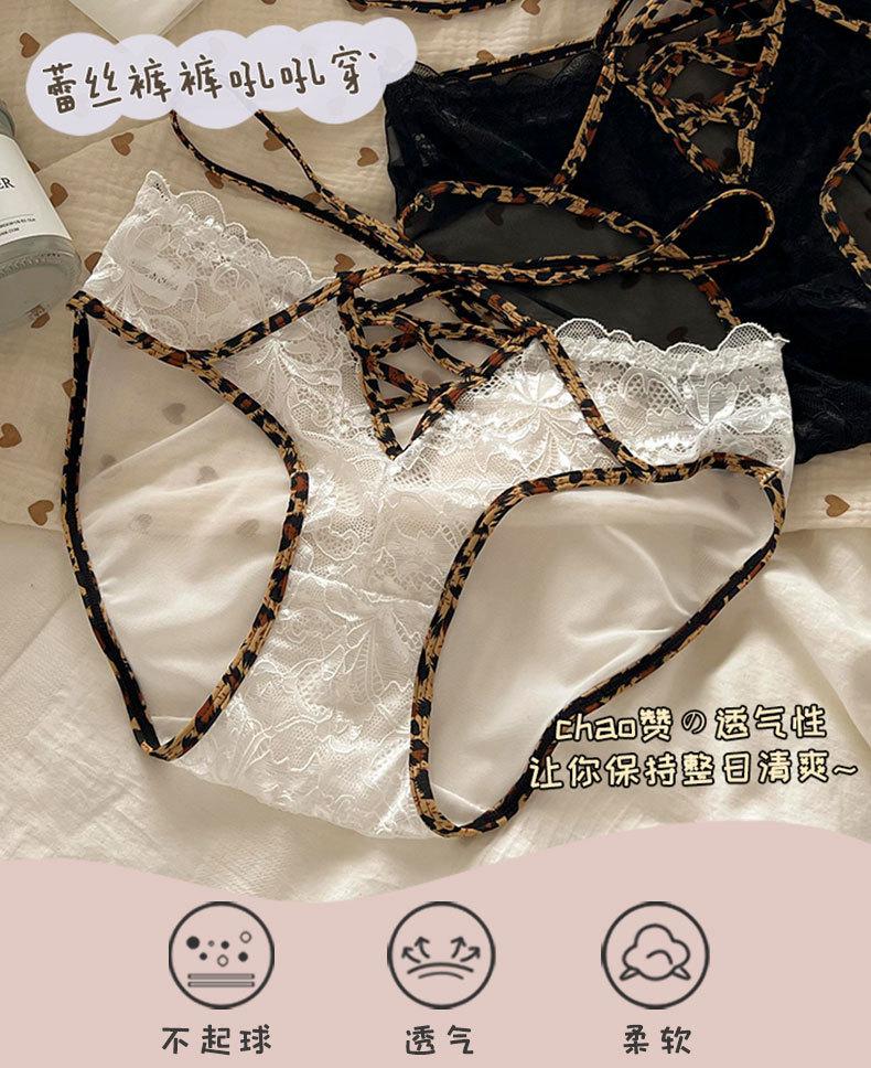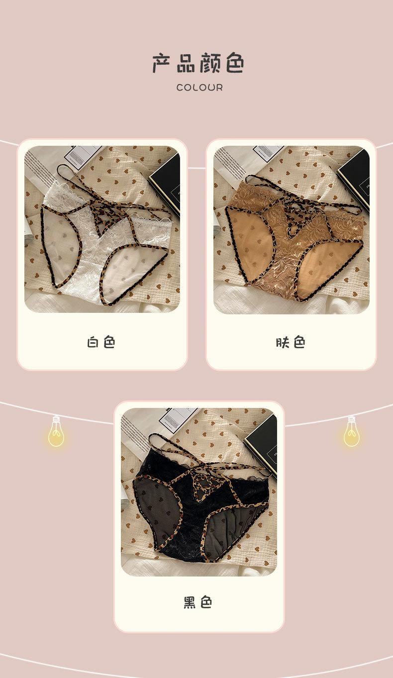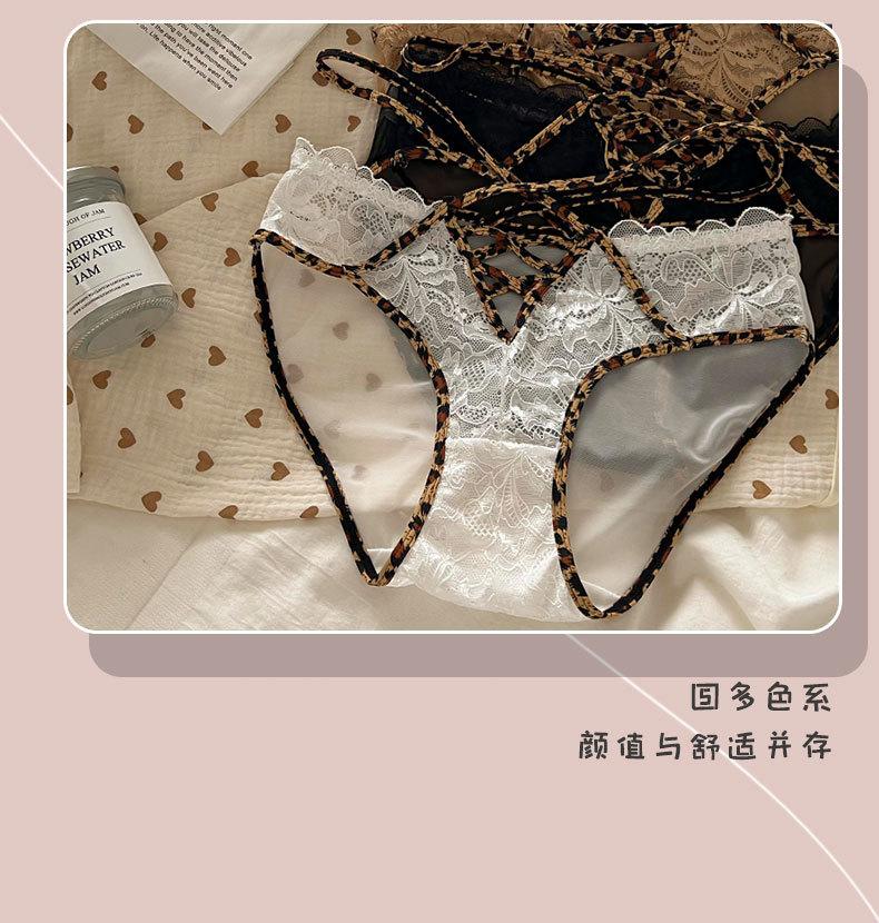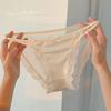 Ropa interior de estilo de deseo puro de niña dulce francesa pura de Jia para mujer, calzoncillos transpirables huecos con cinturón cruzado con borde de encaje