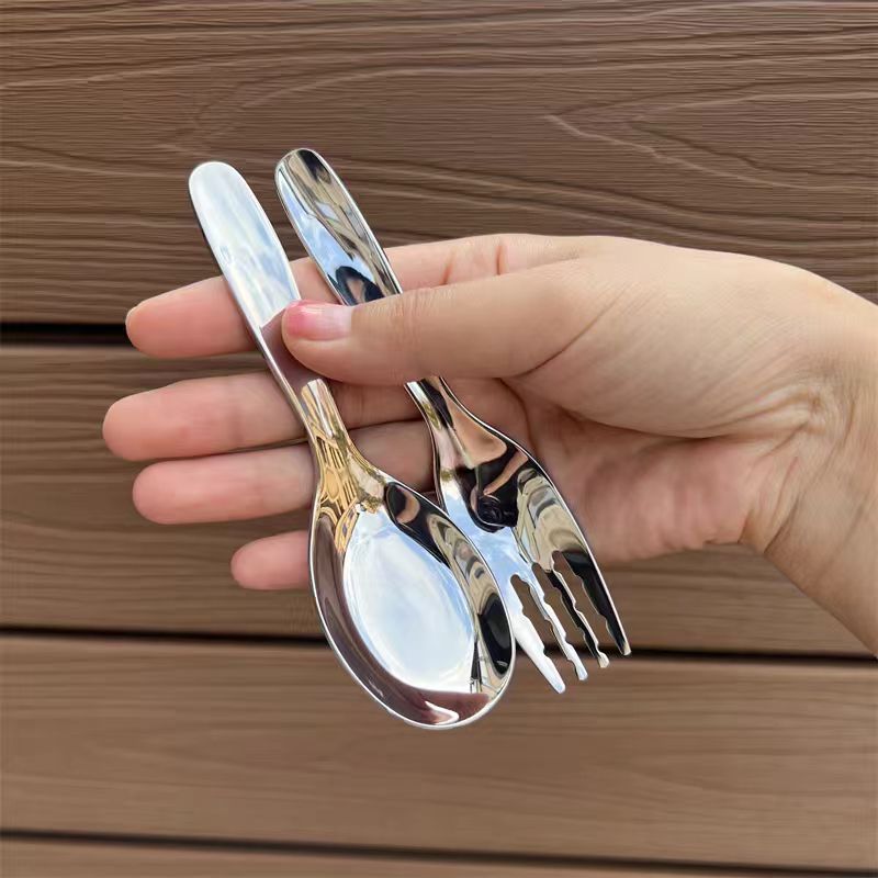 Cuchara y Tenedor de Acero Inoxidable, Cuchara de Fondo Plano Engrosada, Cuchara y Tenedor para Bebé, Cuchara de Mesa de Aspecto Sofisticado, Vajilla Creativa para Comer para Niños