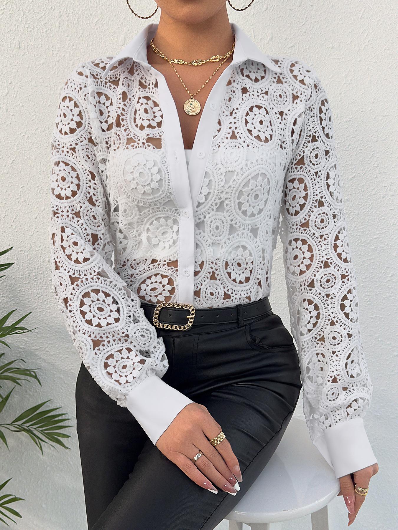 2024 estación independiente wish Amazon popular primavera nuevo manga larga encaje cuello en V camisa de mujer camisa de mujer