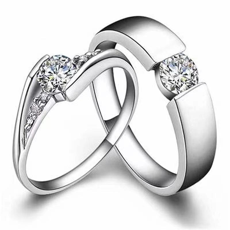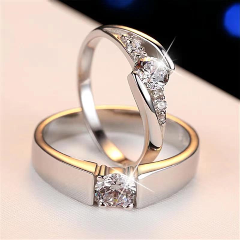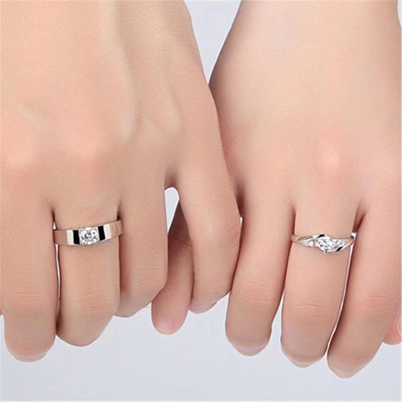 Anillo de pareja clásico creativo de estilo coreano, anillo de boda femenino 925, anillo de estudiante, anillo abierto, propuesta de anillo de diamantes de simulación, venta al por mayor