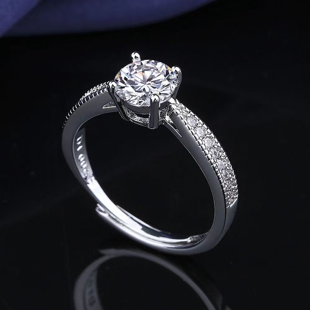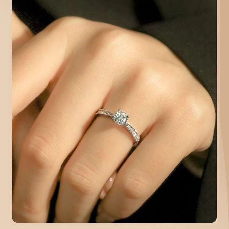 Anillo clásico de moissanita de cuatro garras de 1 quilate, de gran venta en Japón y Corea del Sur, de Douyin, con rocío blanco. Anillo de bodas de lujo ligero.