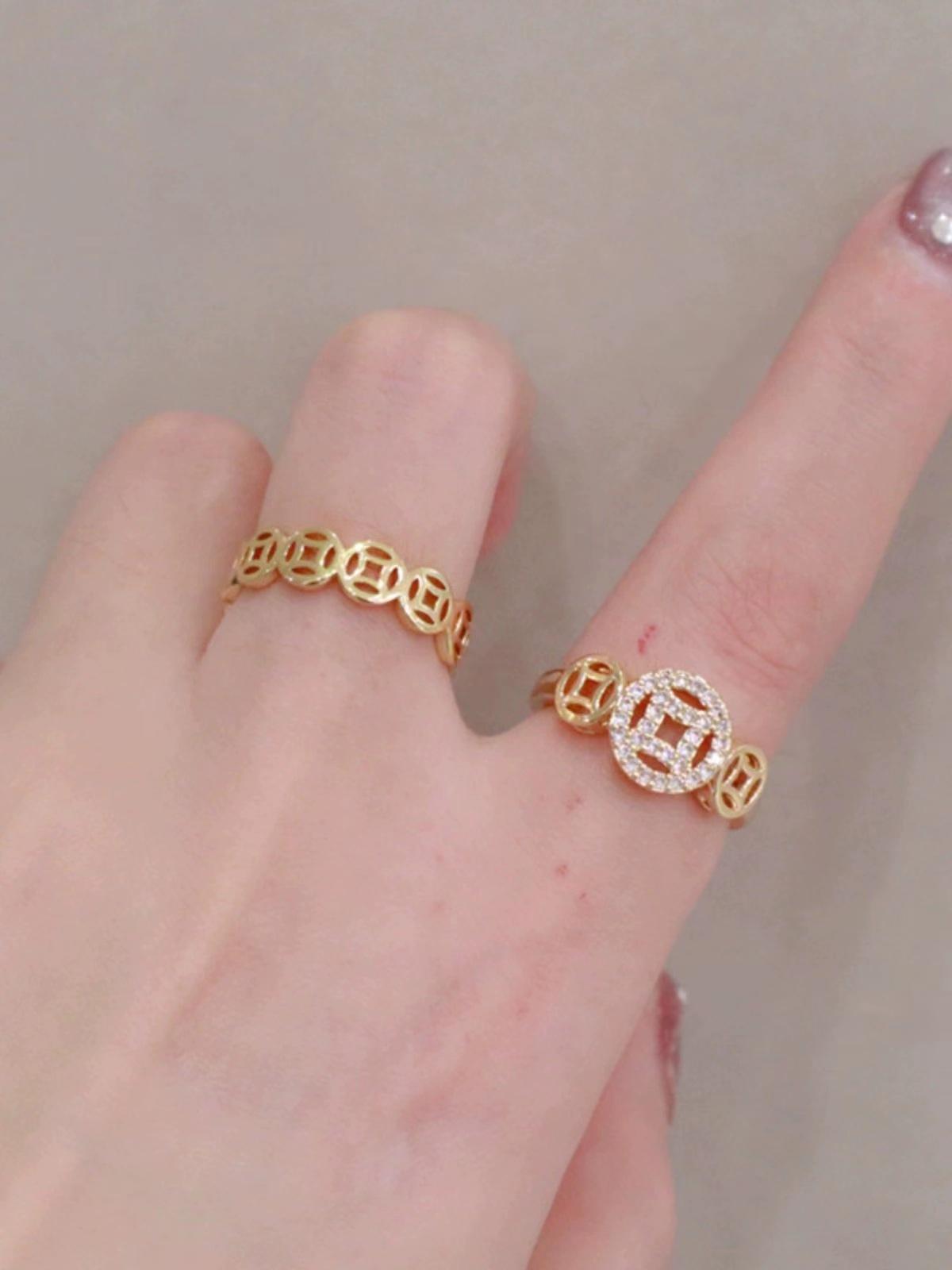 Compra 2023 Anillo abierto simple moda anillo de moneda de cobre temperamento femenino sentido del diseño pequeña personalidad joyería celebridad de Internet al por mayor en Joom.pro