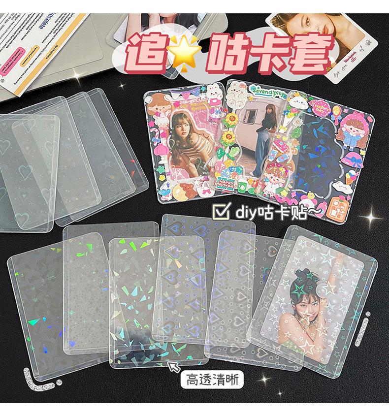 Juego de tarjetas de amor con película de flash láser, tarjetas pequeñas con fotos engrosadas transparentes, álbum de amor con persecución de estrellas de PVC, juego de fotos de estrellas por todo el cielo