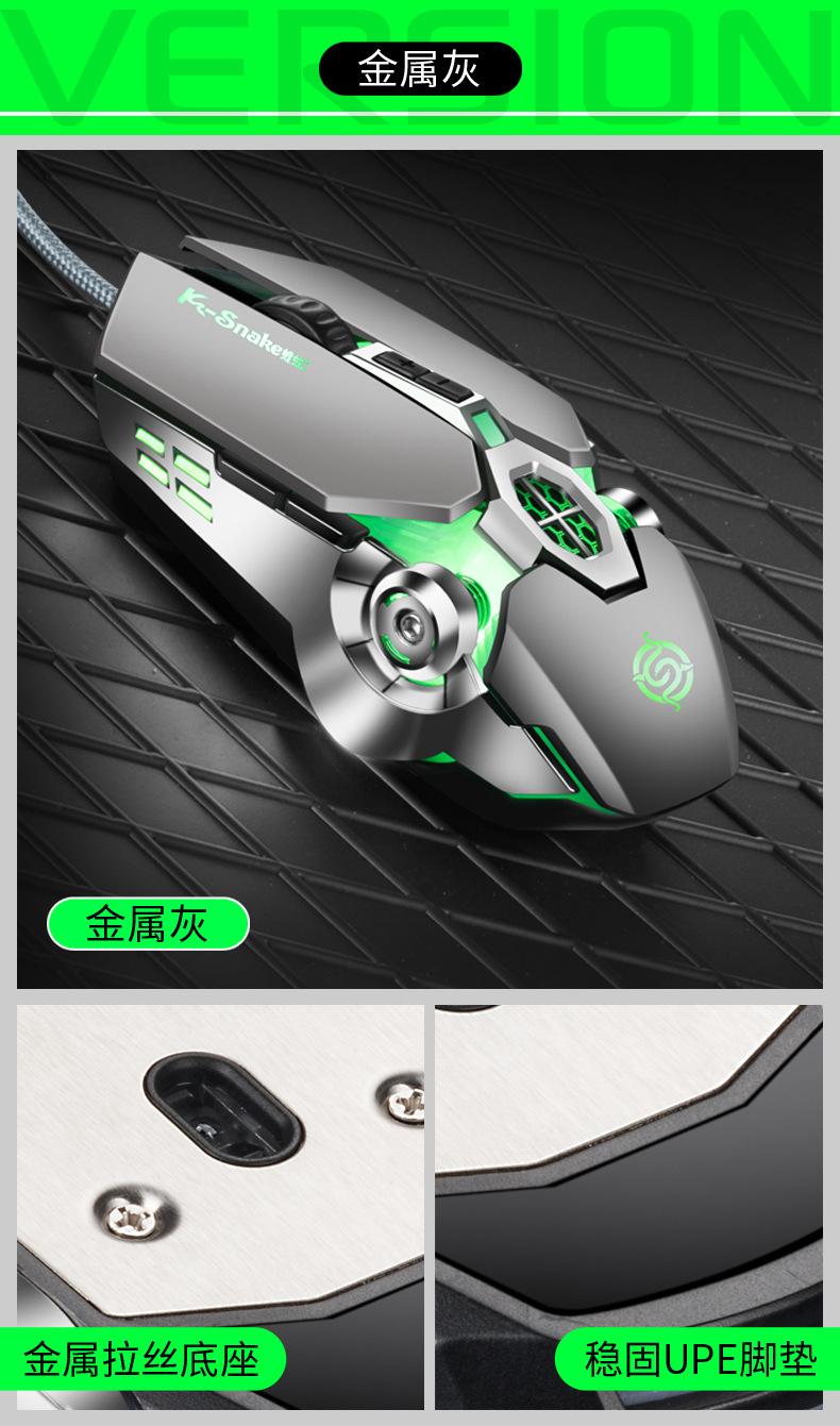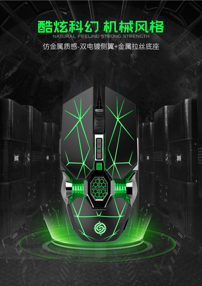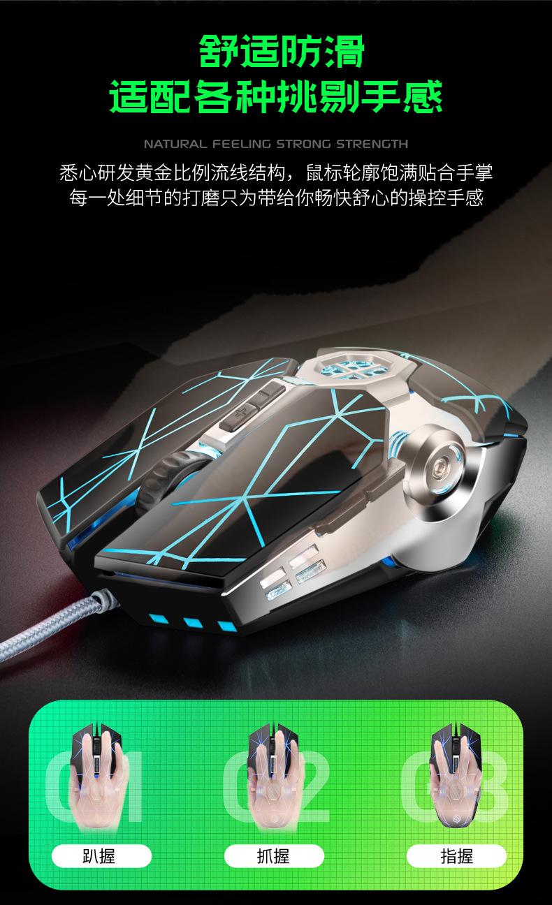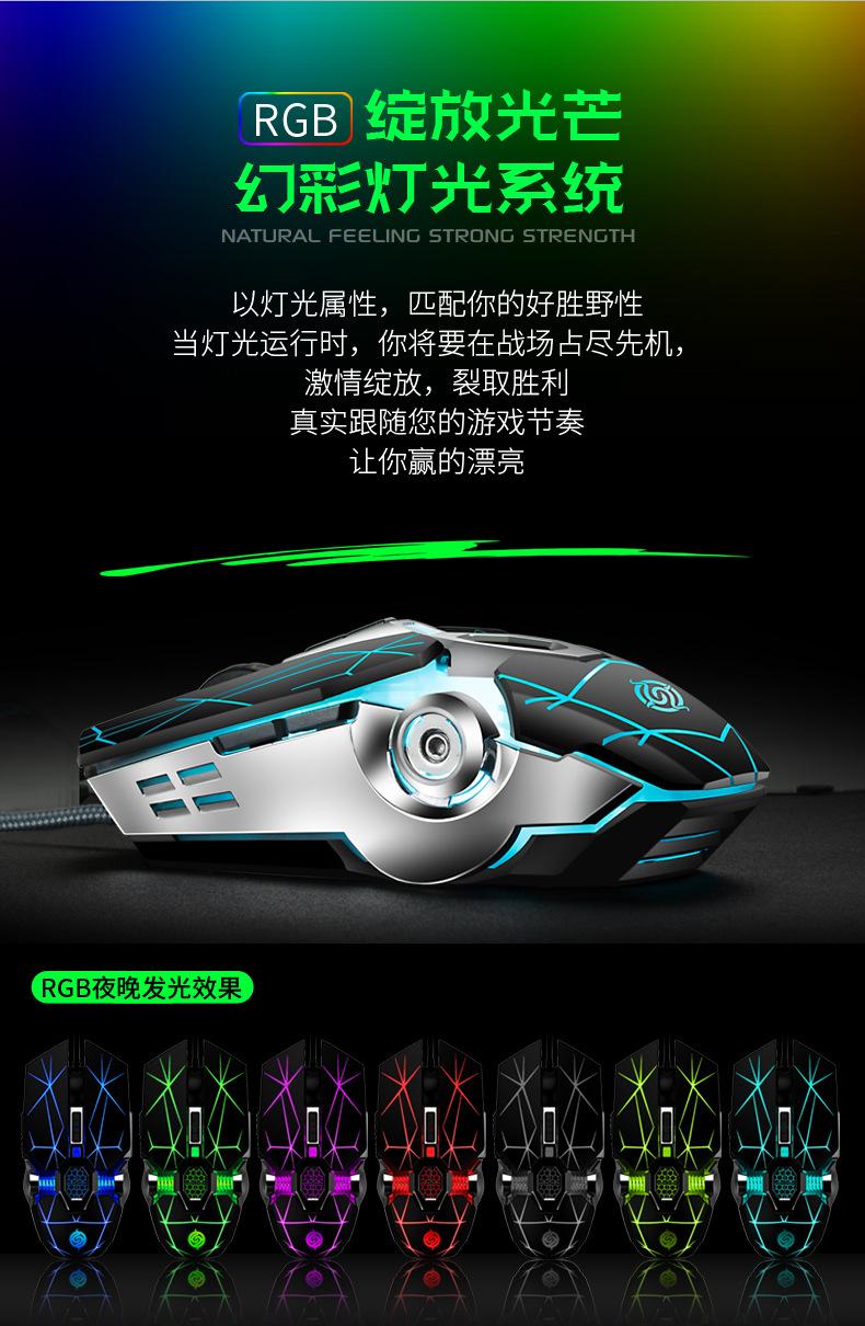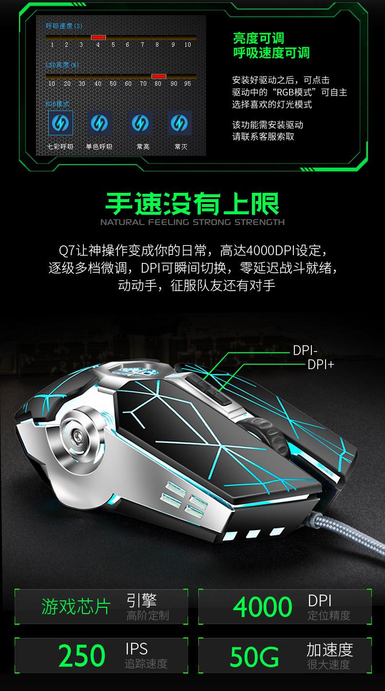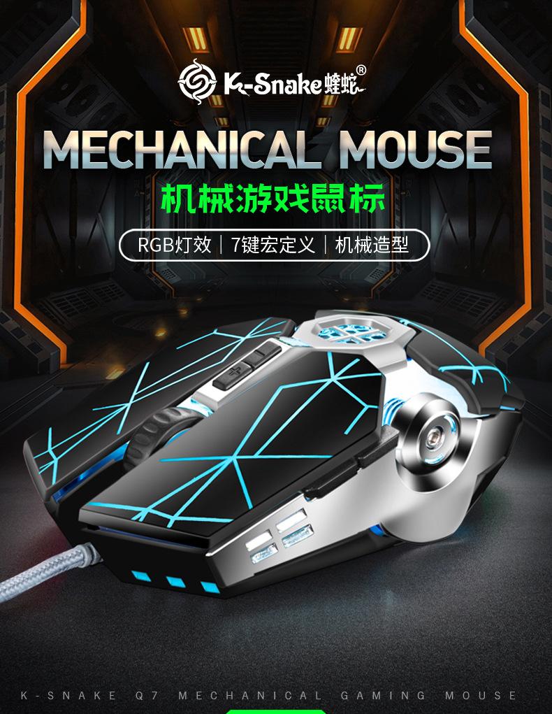 Ratón de juego Viper Q7 luminoso, eléctrico, de competición, mecánico, de metal, para ordenador de escritorio, portátil, con cable USB