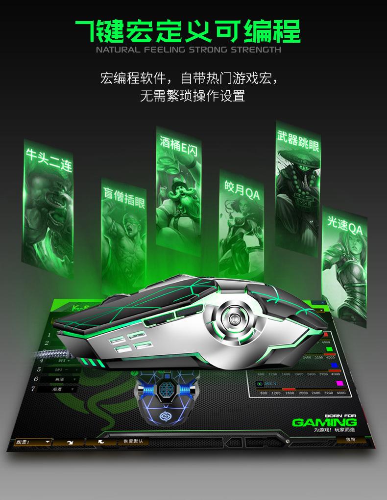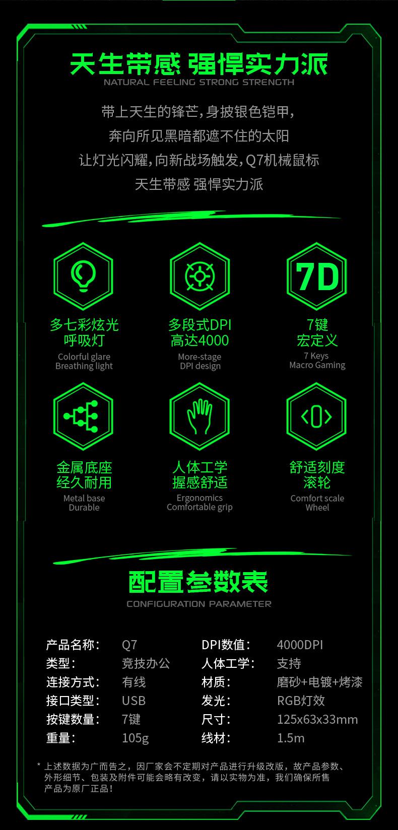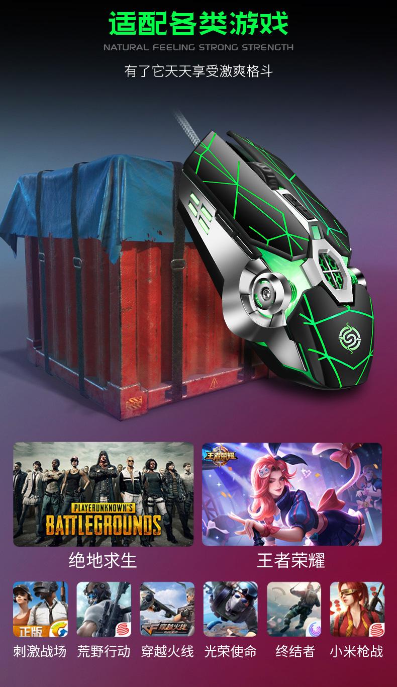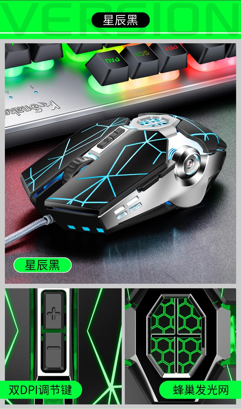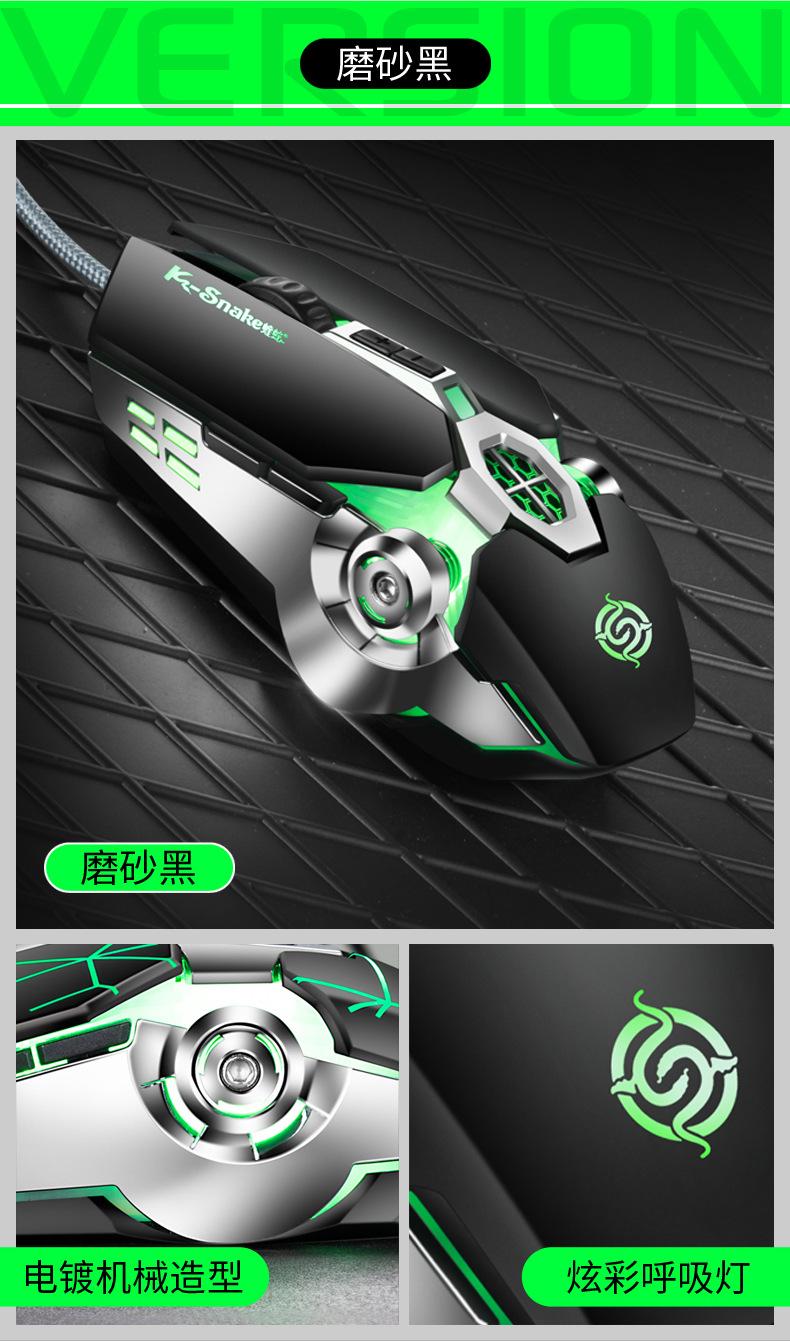 Ratón de juego Viper Q7 luminoso, eléctrico, de competición, mecánico, de metal, para ordenador de escritorio, portátil, con cable USB