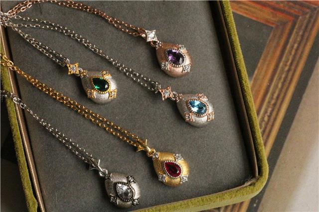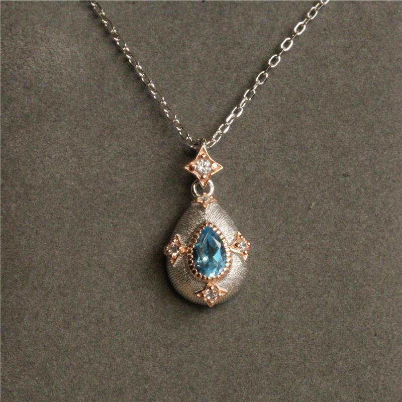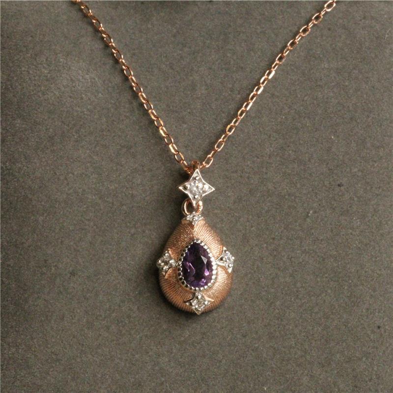 Bolsa de la Fortuna Colgante de Topacio Chapado en Oro Amatista Zircón Collar Elegante Vintage Cepillado Cadena para Clavícula de Mujer Cinco Colores Opcionales