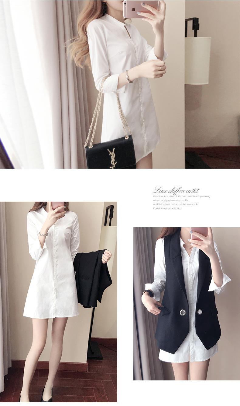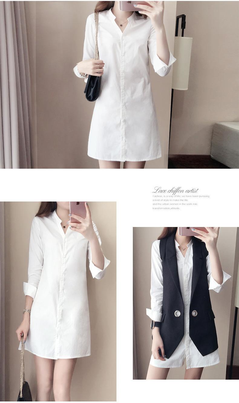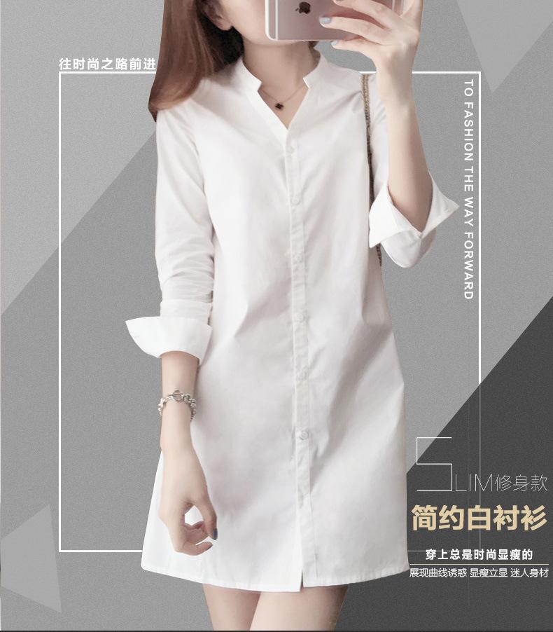 Camisa de cuello en V estilo coreano de primavera y otoño de 2022, camisa de manga larga midi adelgazante entallada de estilo coreano de moda para mujer