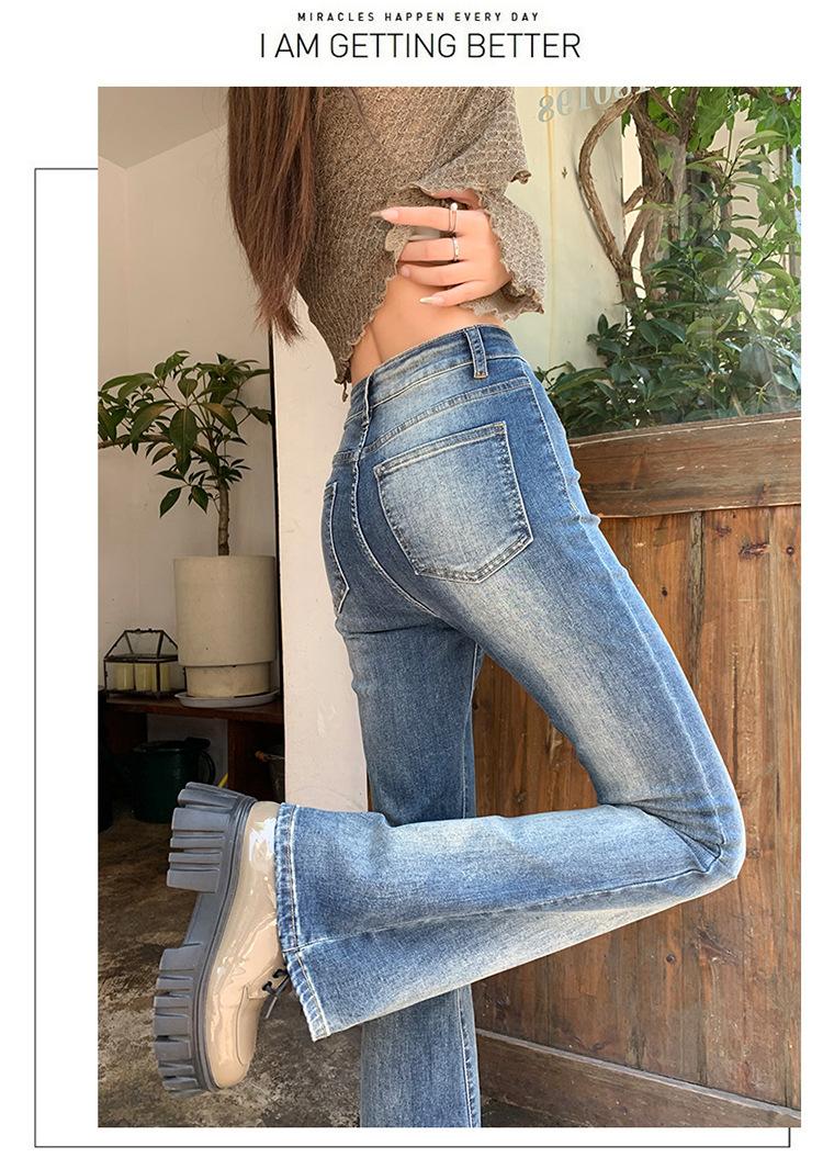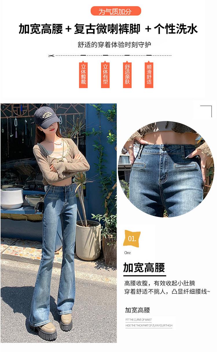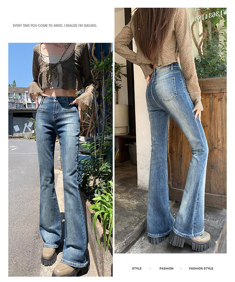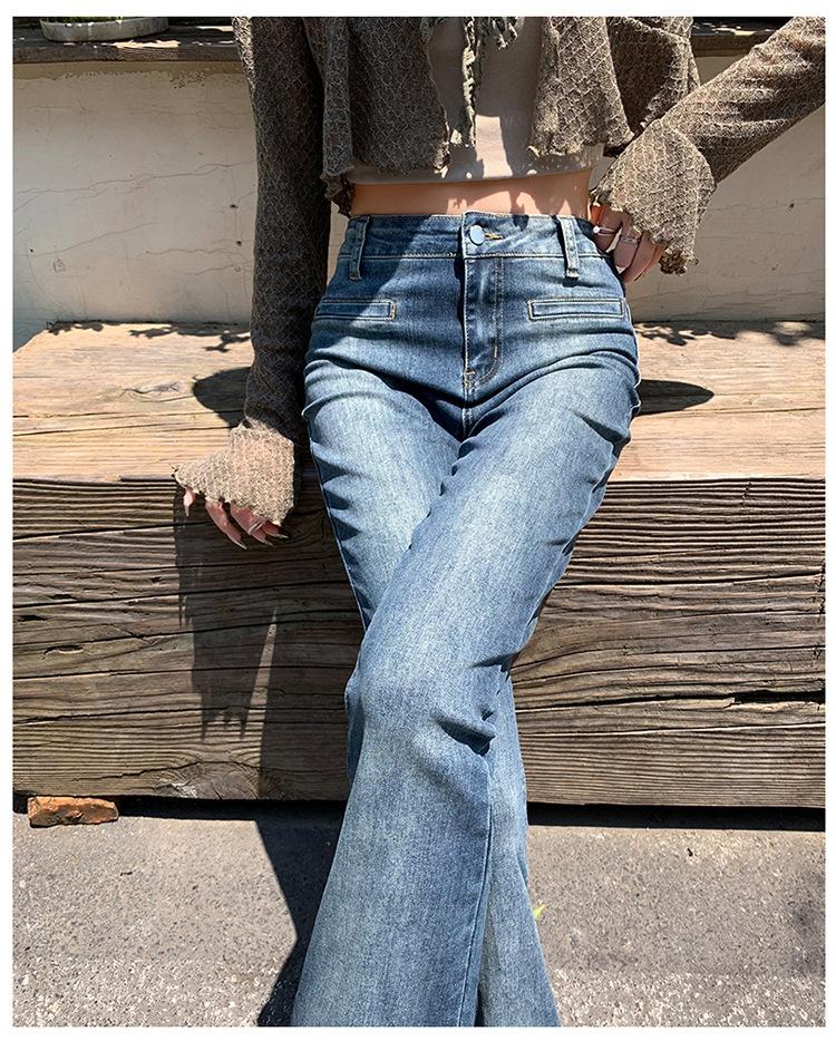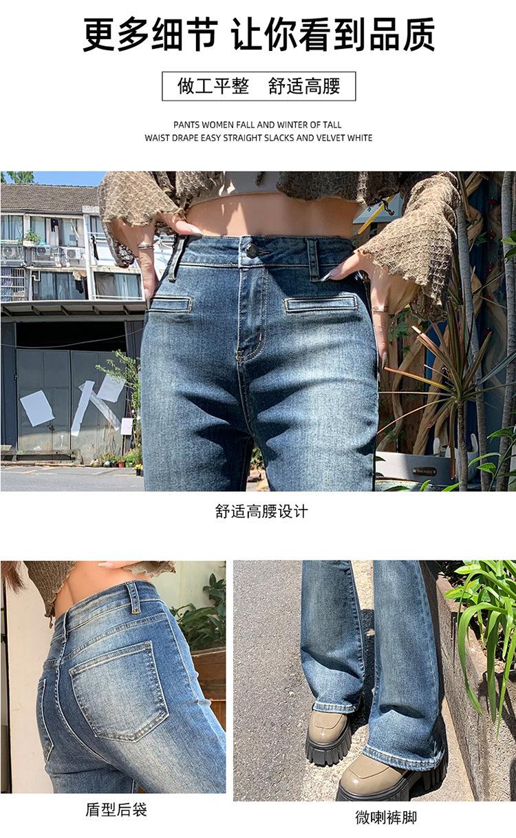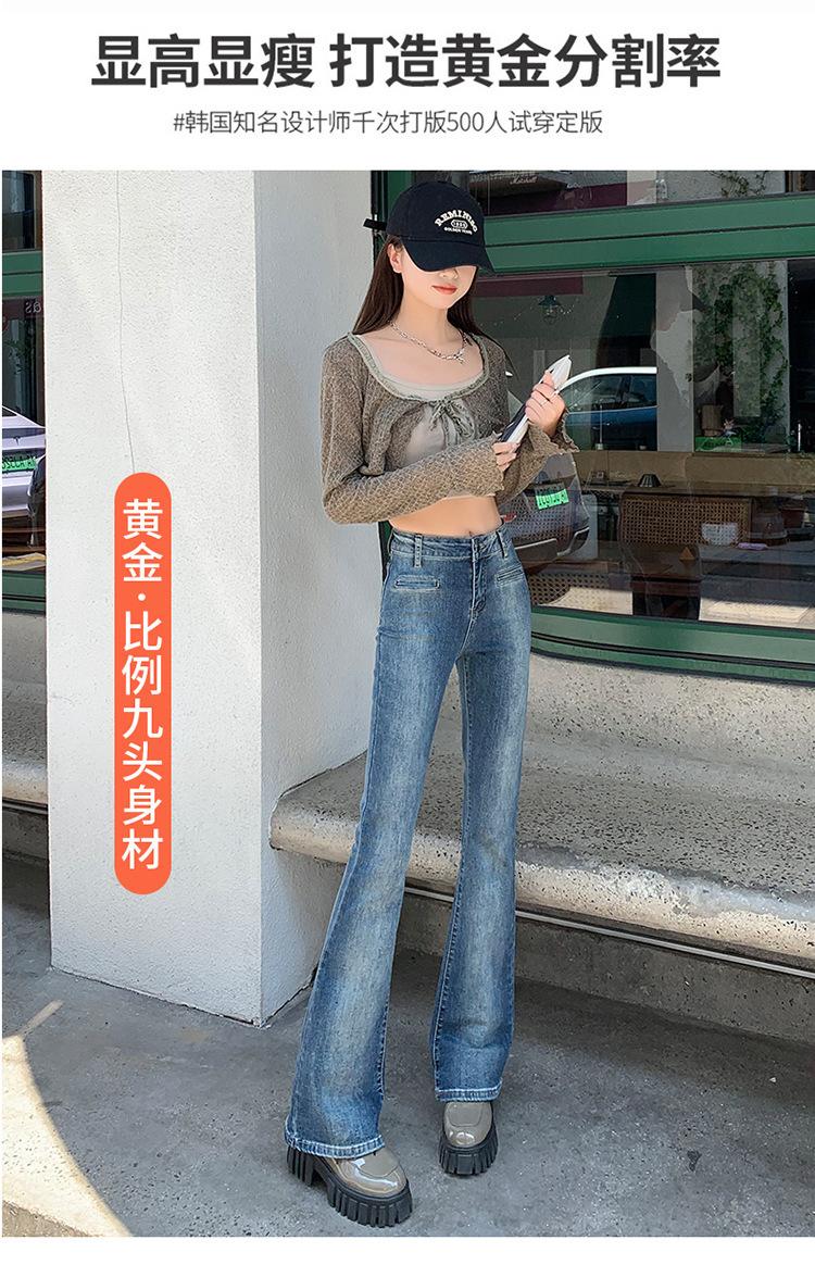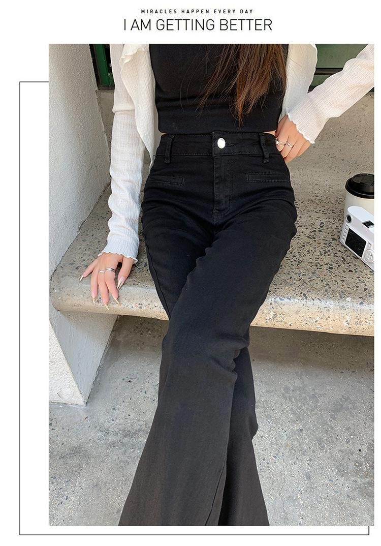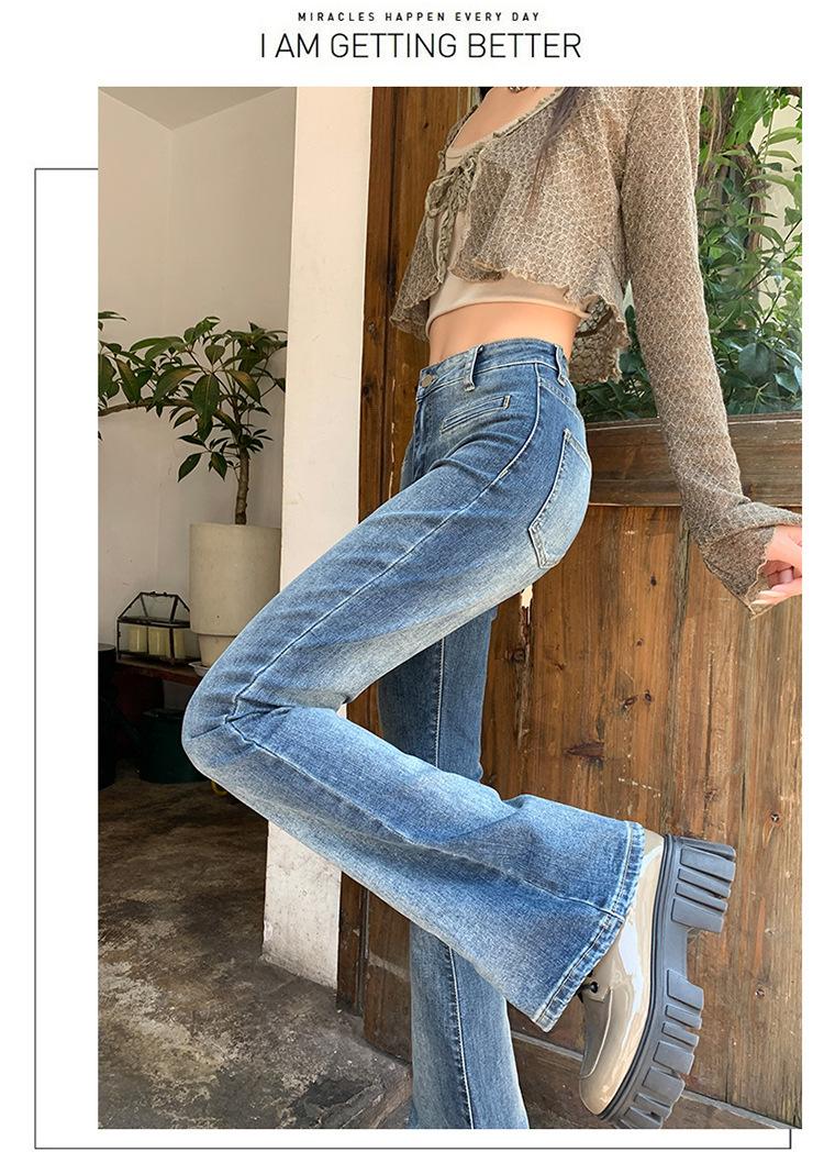 Estilo Dulce Cool Ligeros Jeans de Otoño para Mujer Cintura Alta Adelgazantes Elásticos Acampanados Otoño Estilo Spice Bolsillo Personalizado
