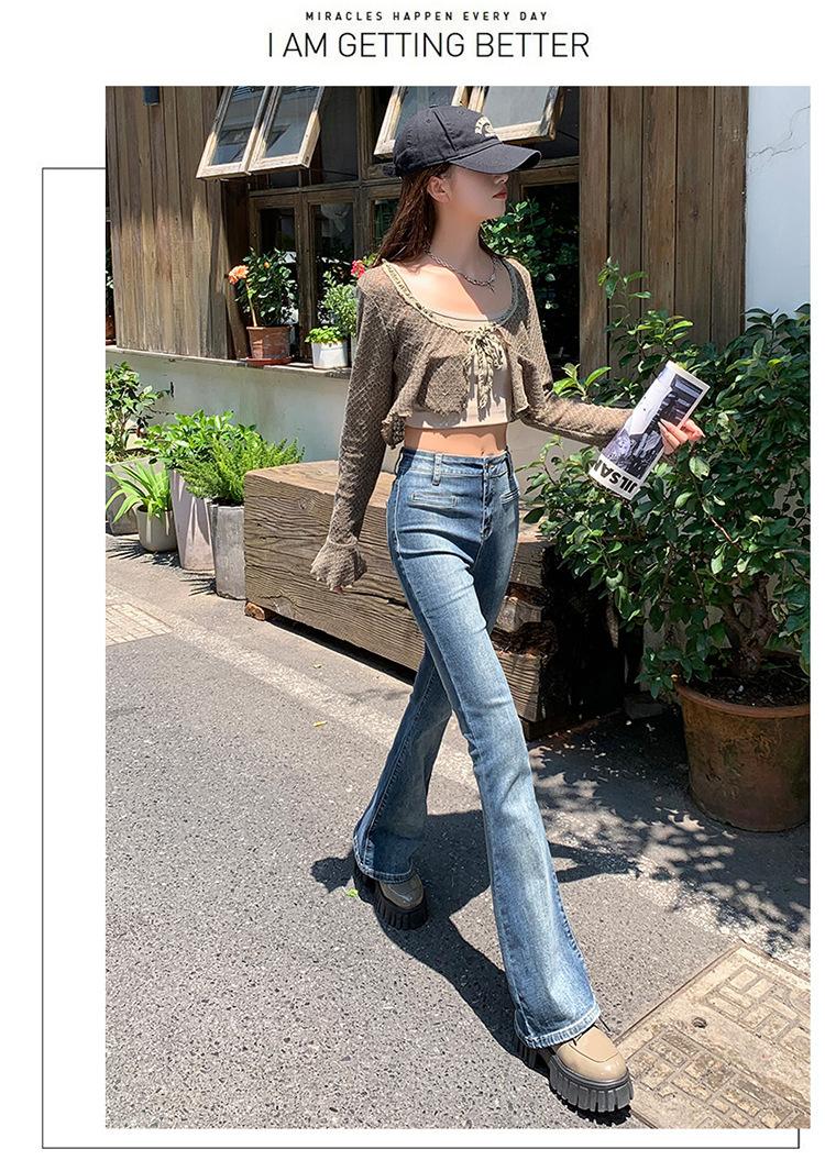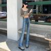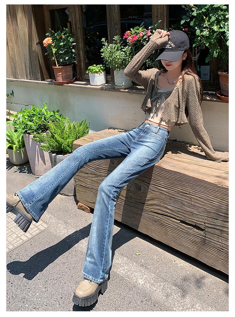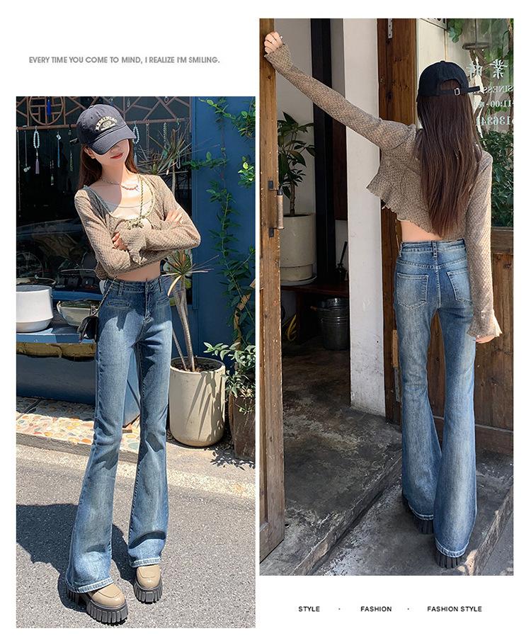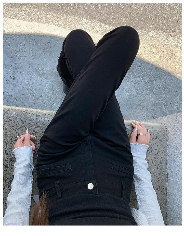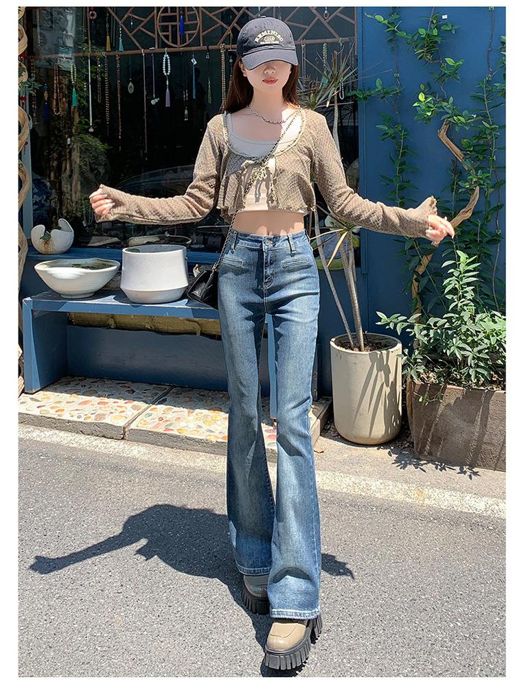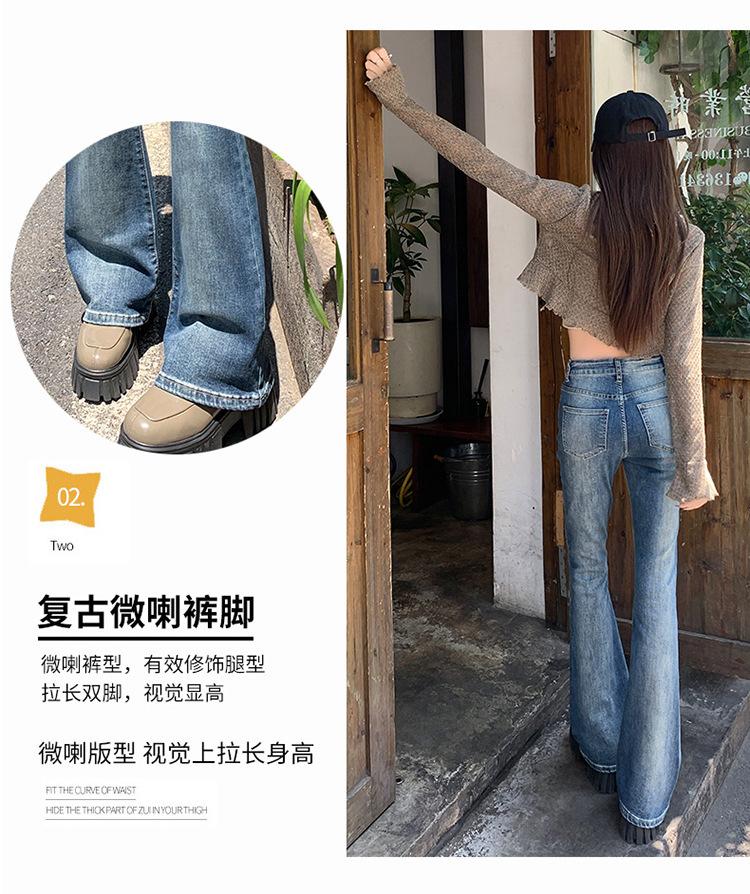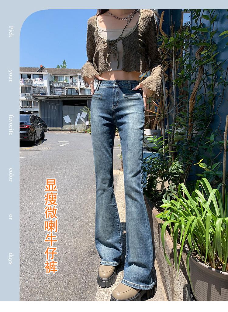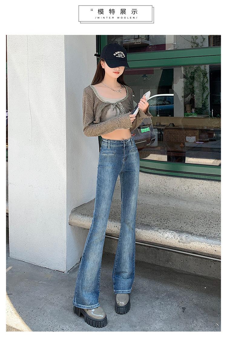 Estilo Dulce Cool Ligeros Jeans de Otoño para Mujer Cintura Alta Adelgazantes Elásticos Acampanados Otoño Estilo Spice Bolsillo Personalizado