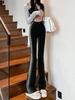 Pantalones acampanados de cintura alta de terciopelo YKK plus para mujer, pantalones de herradura ajustados de marca de cuero para otoño e invierno, pantalones vaqueros acampanados para mujer para otoño e invierno
