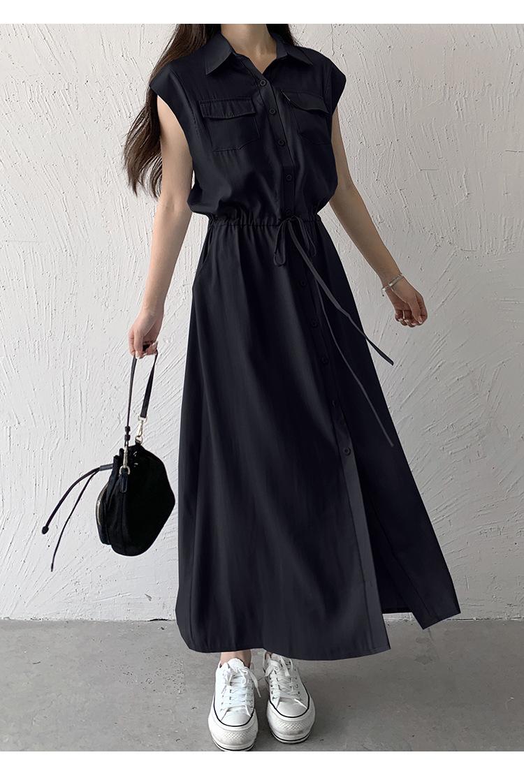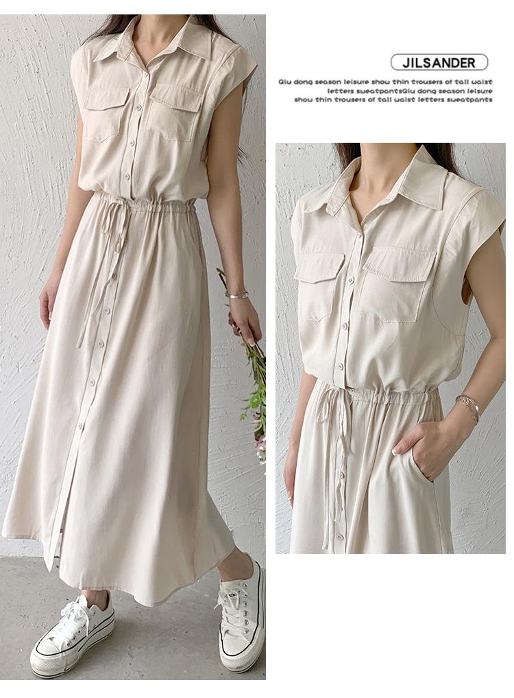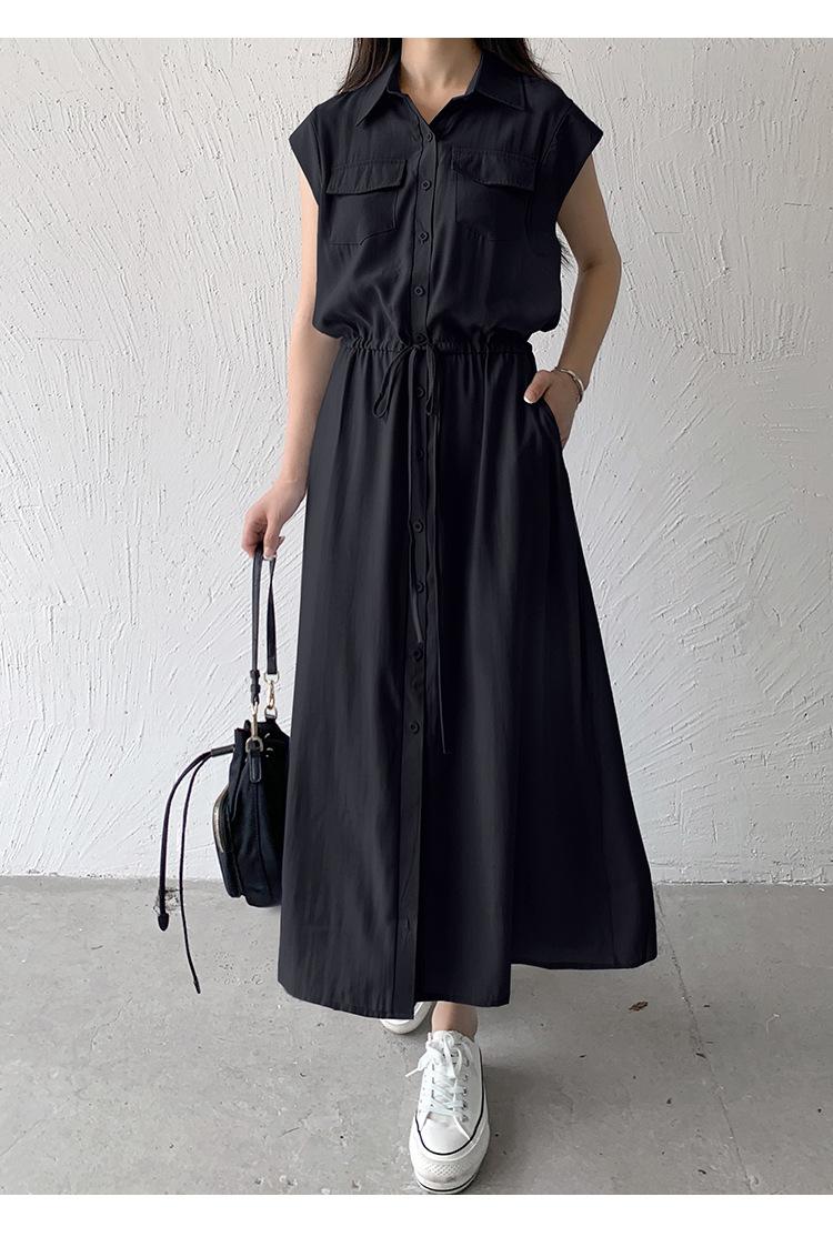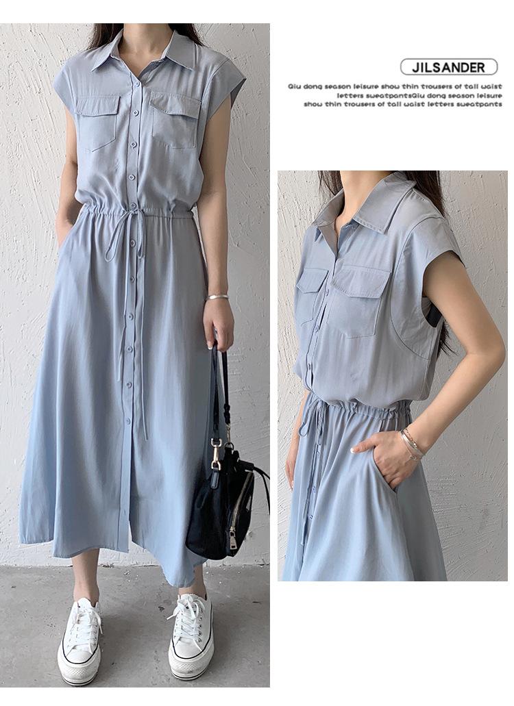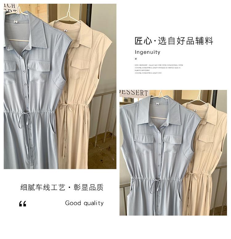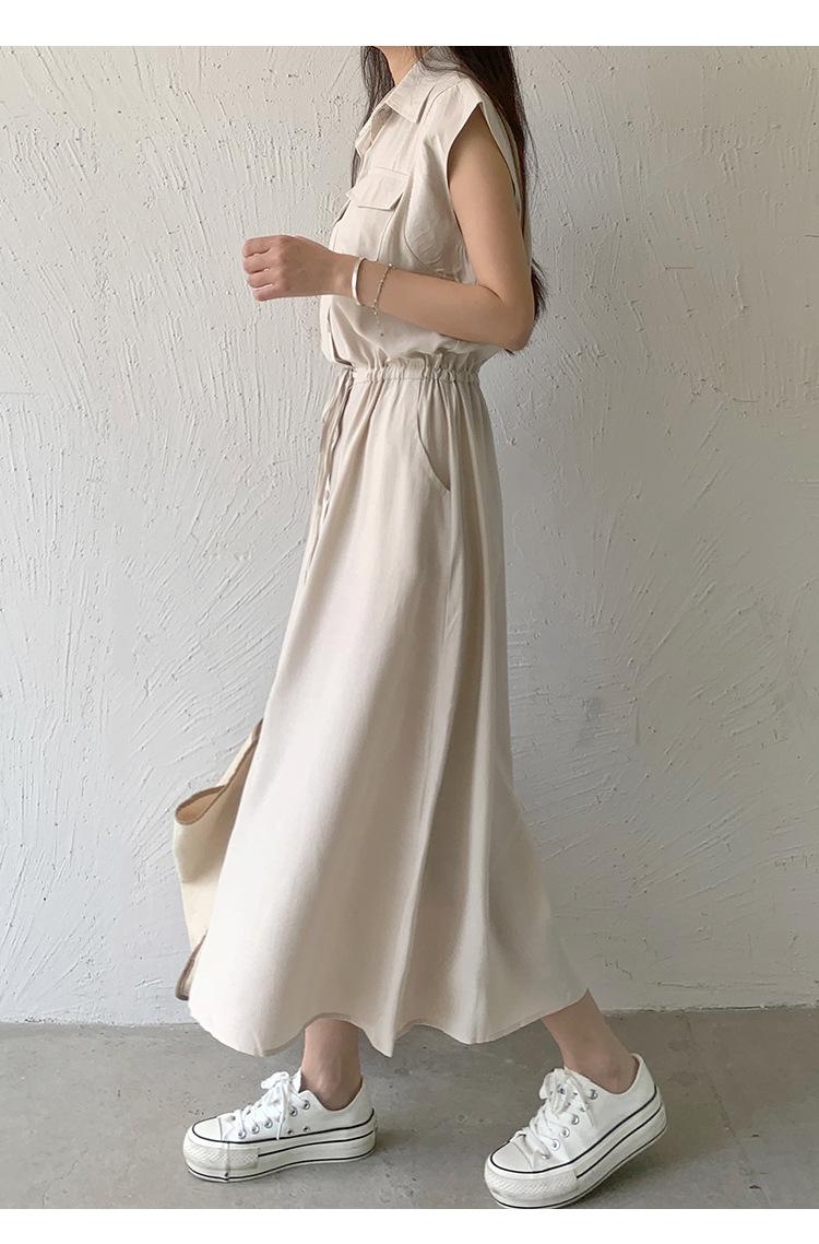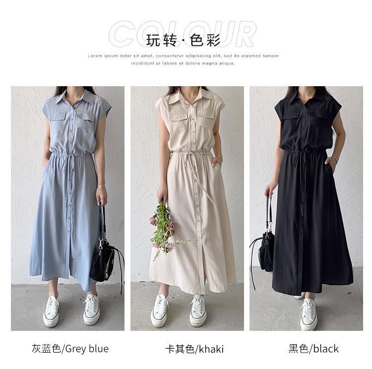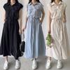 Lotte Estilo Japonés Verano Nuevo Vestido Camisero para Mujer Sentido de Alta Gama Holgado Sin Mangas Moda Combinable Estilo Perezoso Vestido Largo