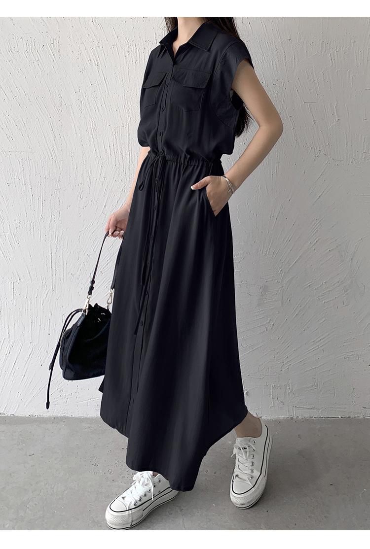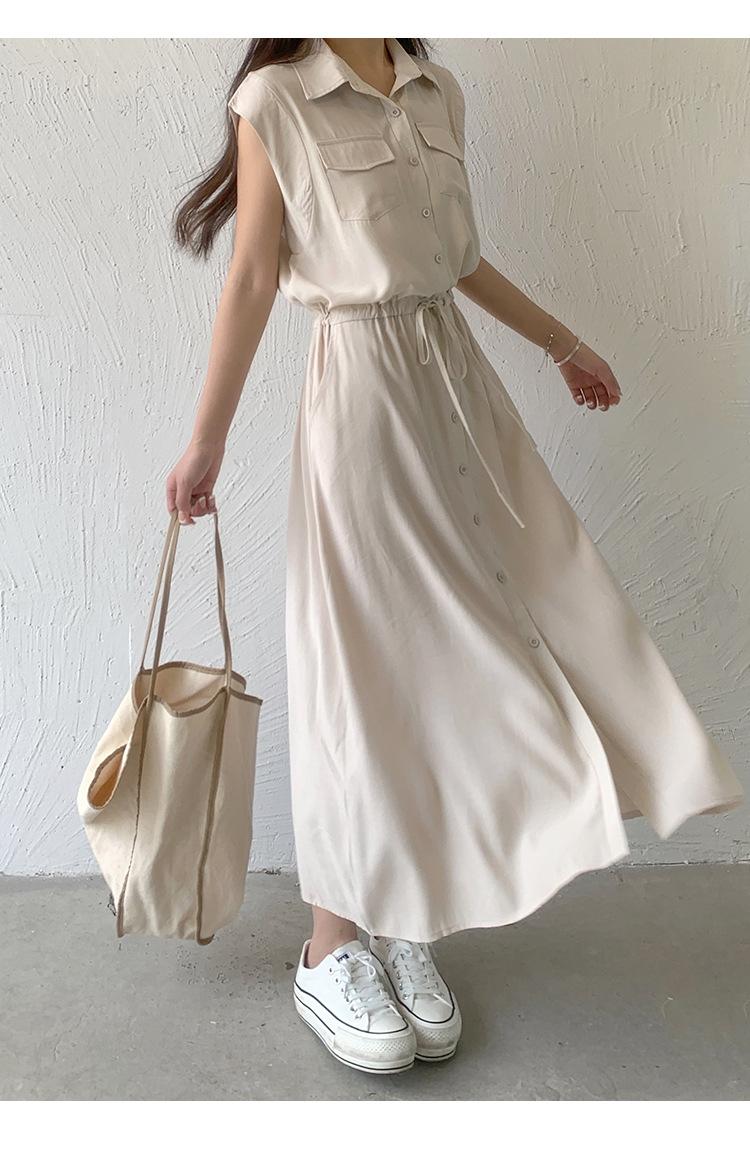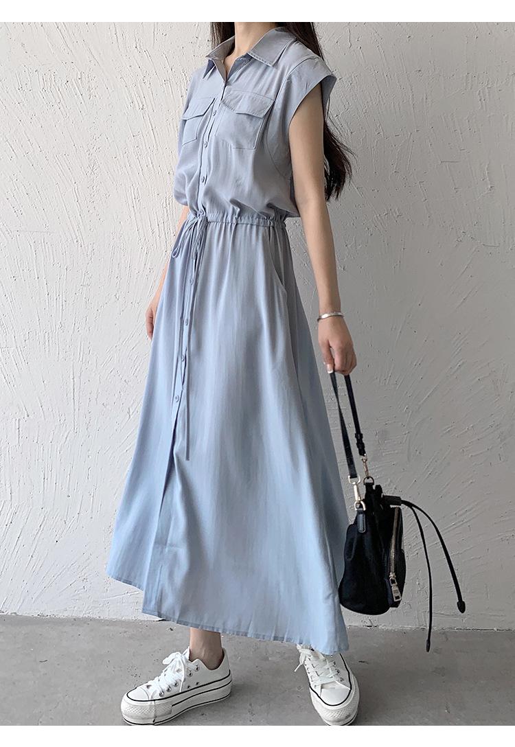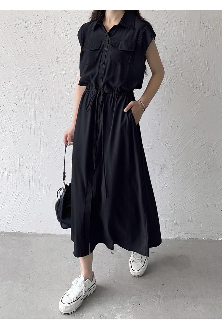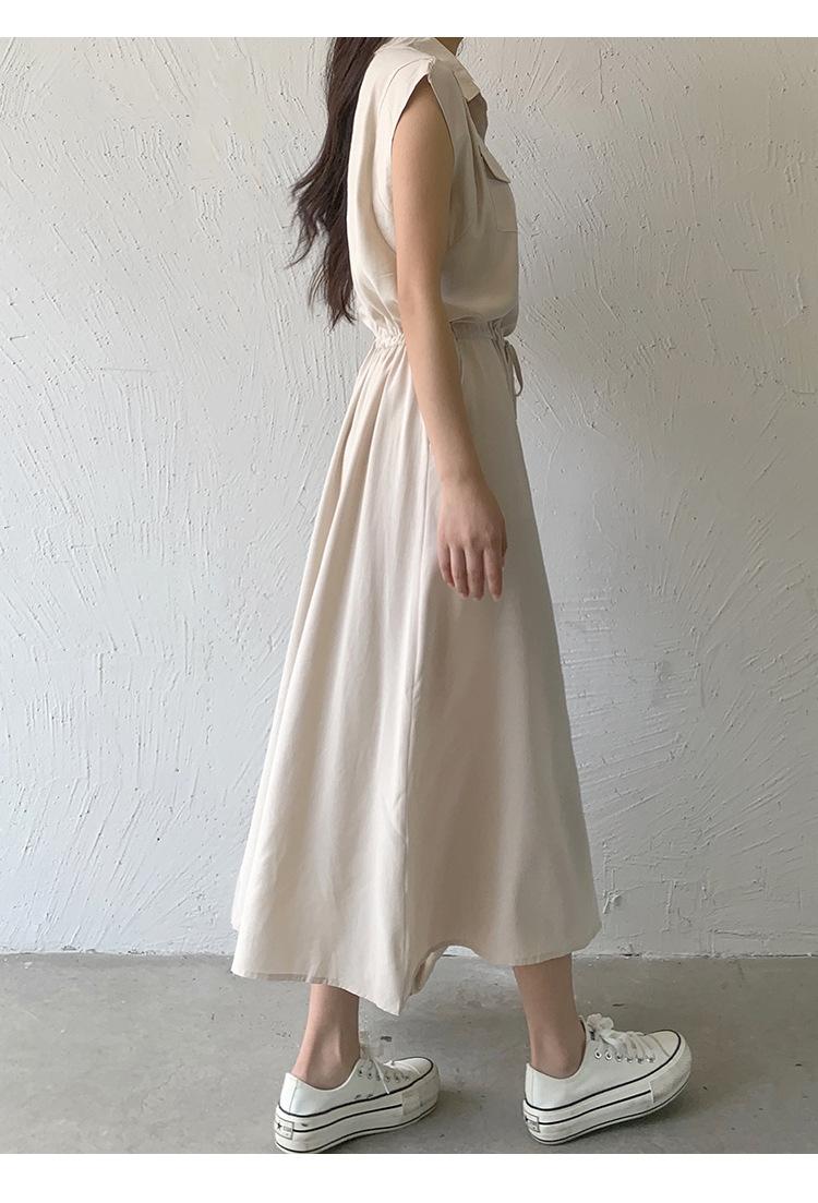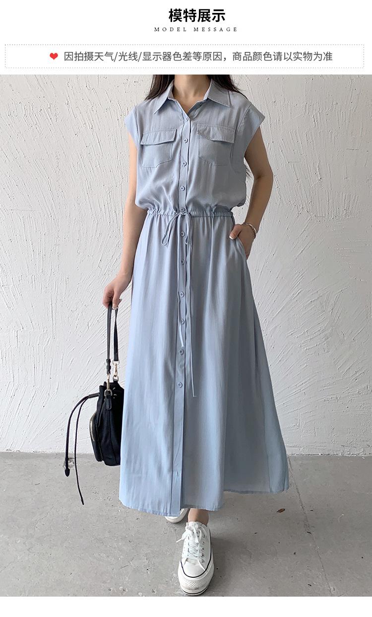 Lotte Estilo Japonés Verano Nuevo Vestido Camisero para Mujer Sentido de Alta Gama Holgado Sin Mangas Moda Combinable Estilo Perezoso Vestido Largo