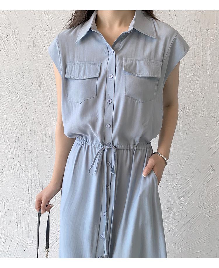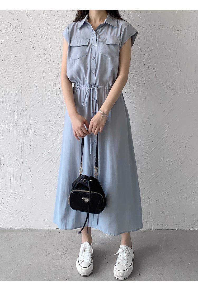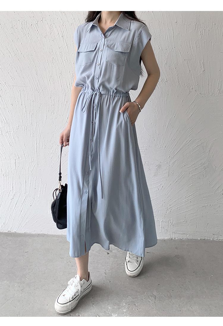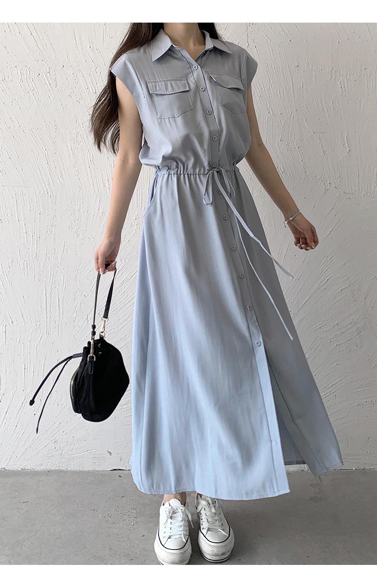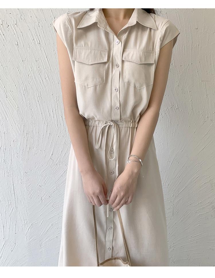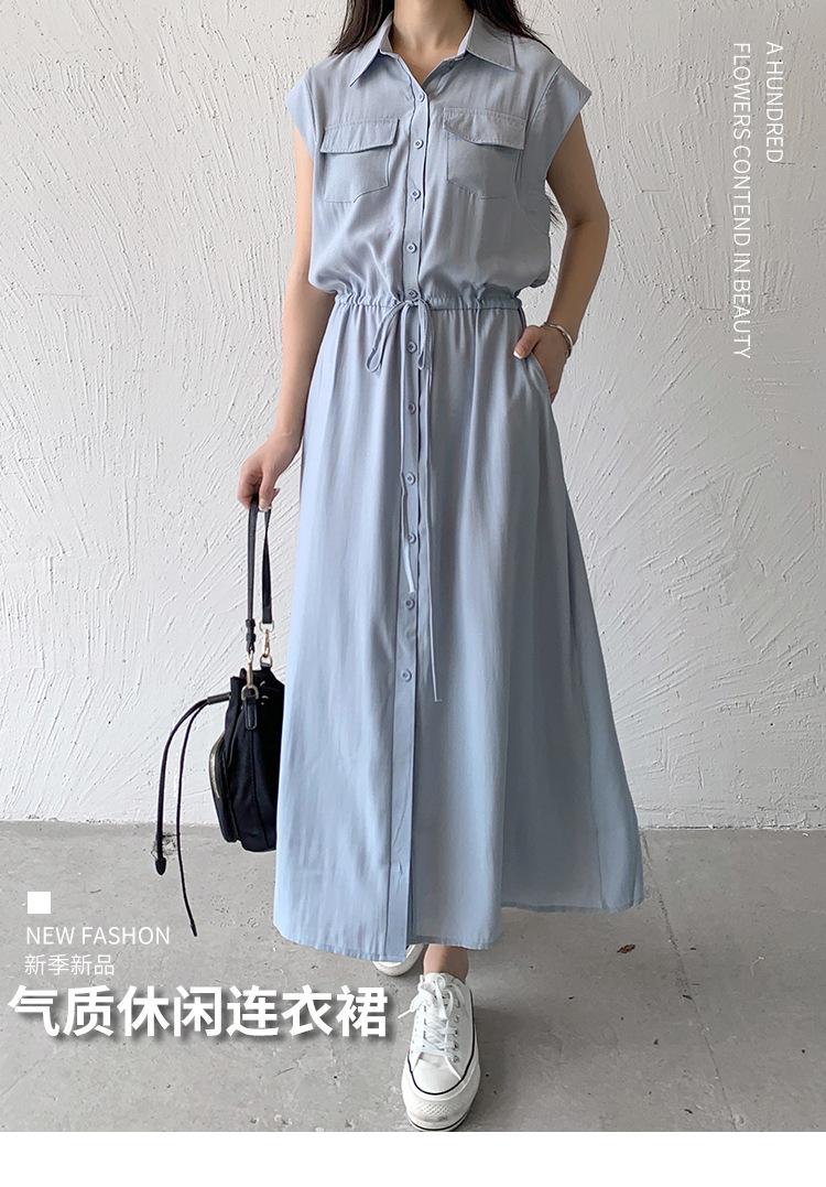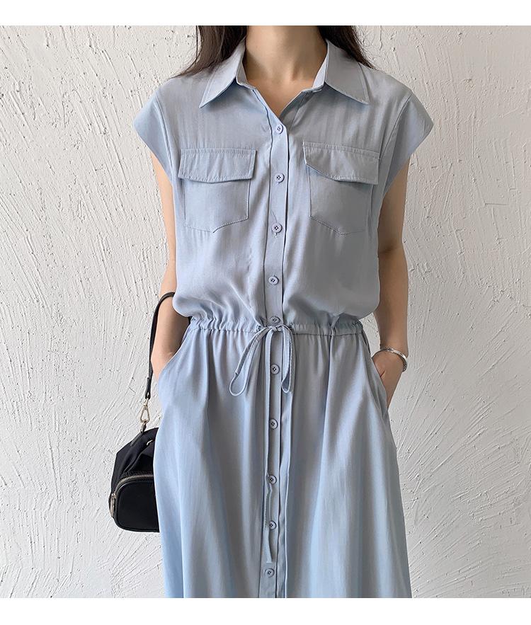 Lotte Estilo Japonés Verano Nuevo Vestido Camisero para Mujer Sentido de Alta Gama Holgado Sin Mangas Moda Combinable Estilo Perezoso Vestido Largo