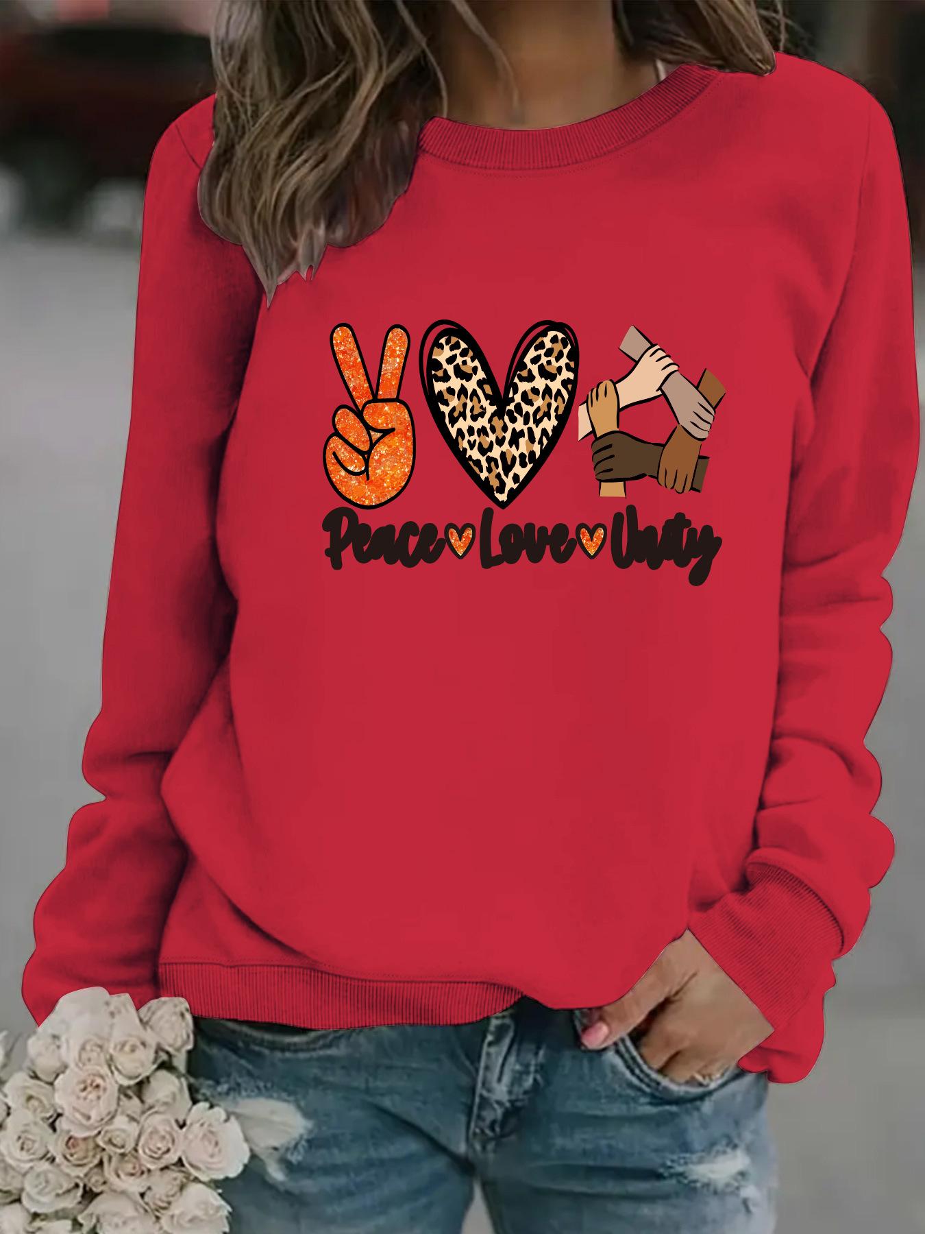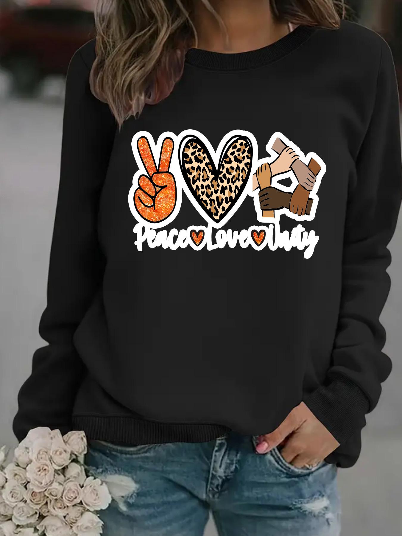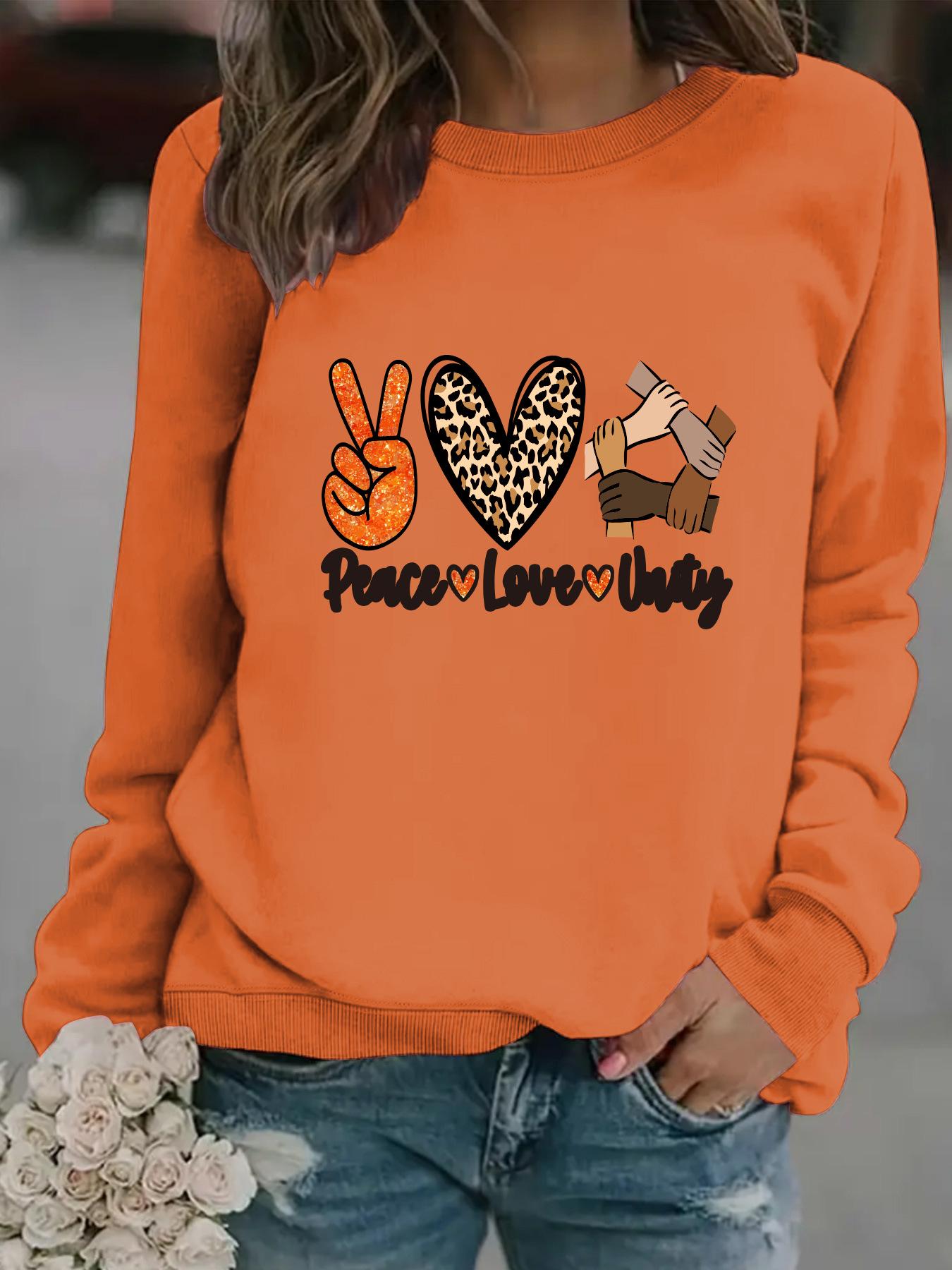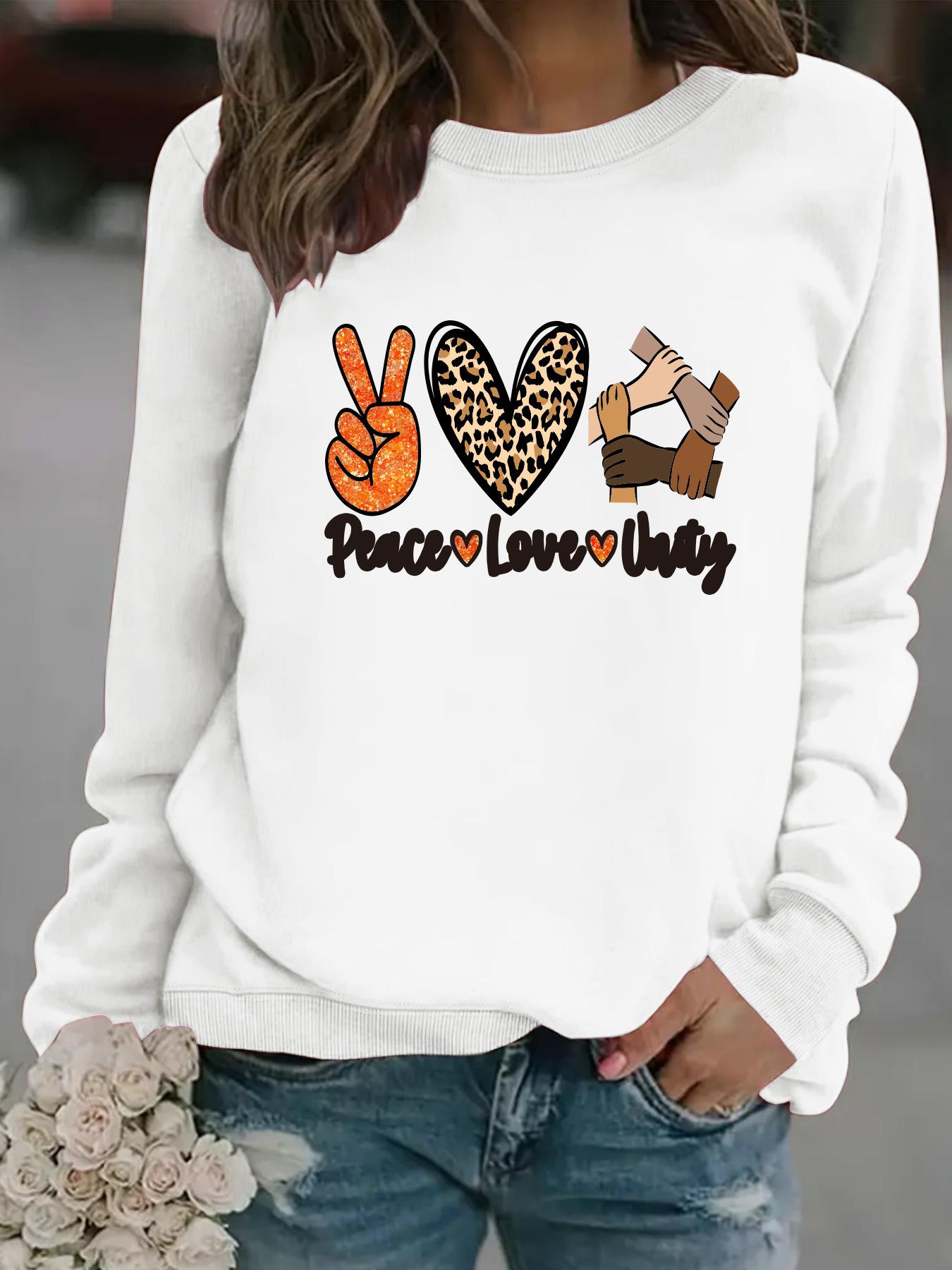 Sudadera con cuello redondo y manga larga informal para mujer, suéter con estampado "Peace love uatg", otoño e invierno, venta al por mayor