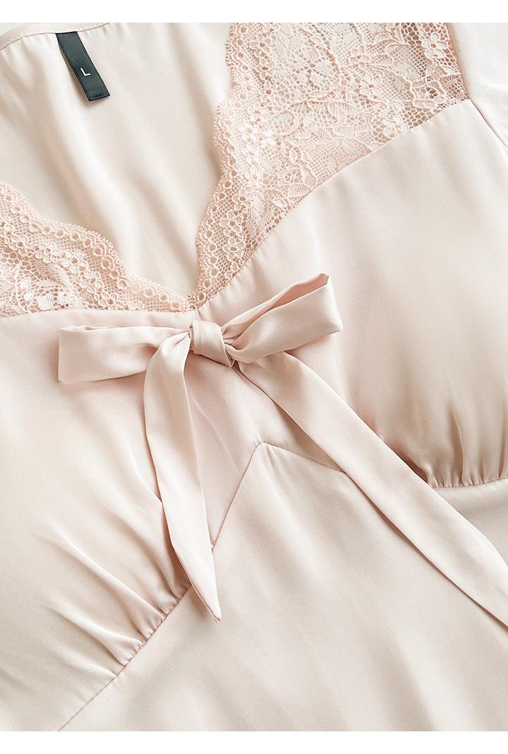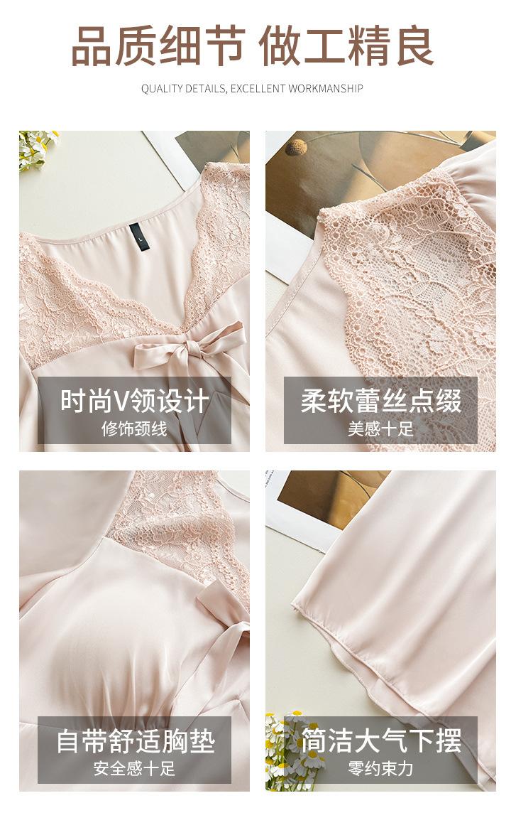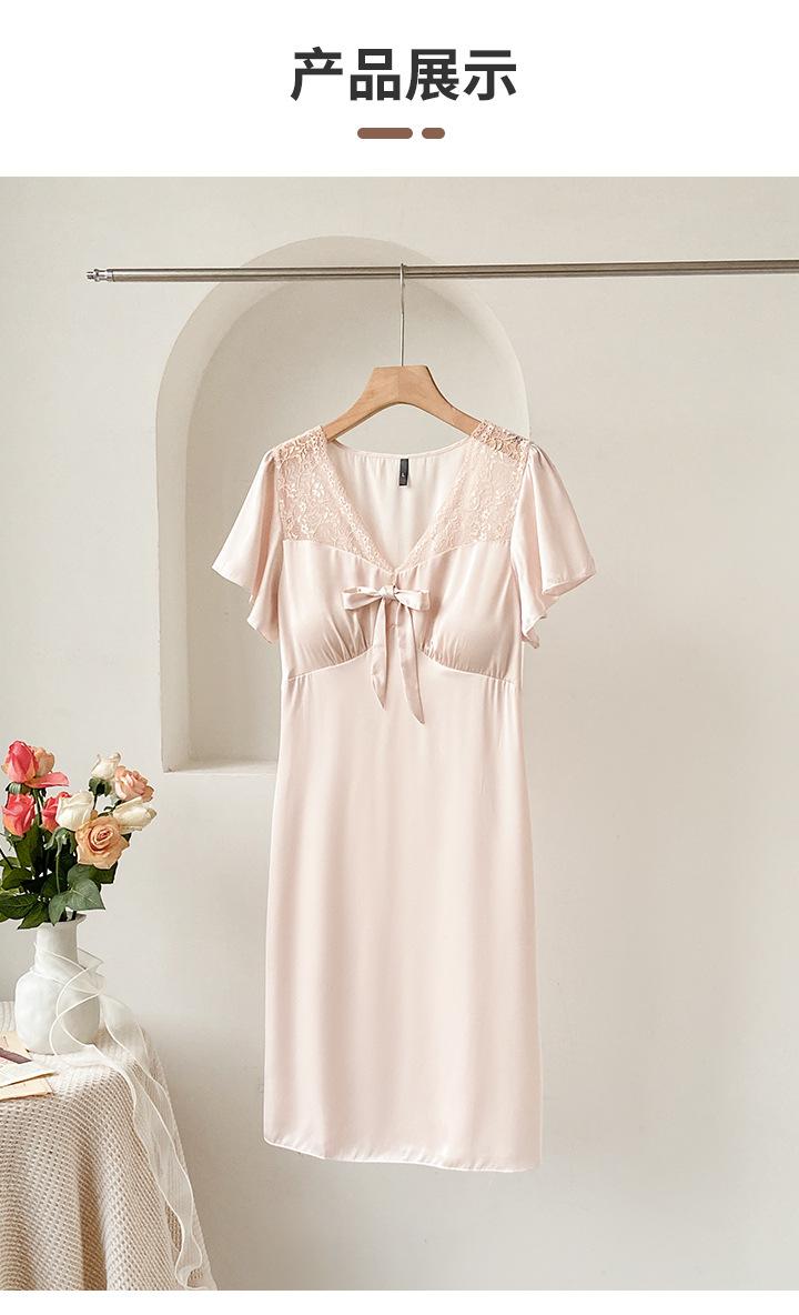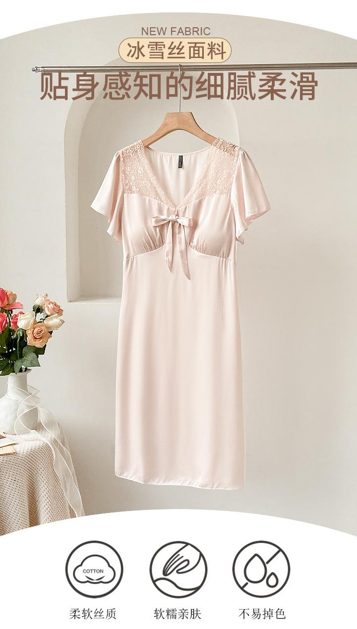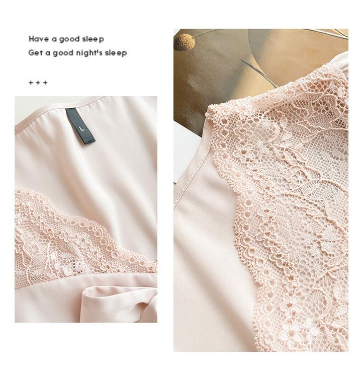Pijama de corte francés, camisón de encaje de verano de seda de hielo para mujer, vestido de alta gama de estilo dulce para habitación privada sexy de seda