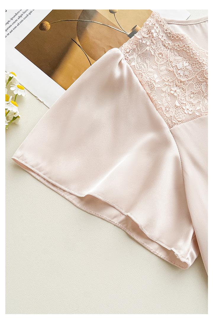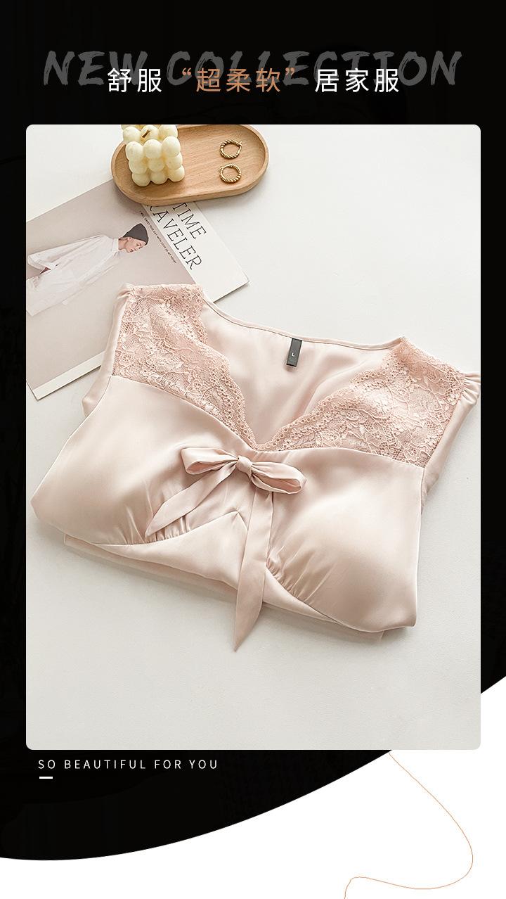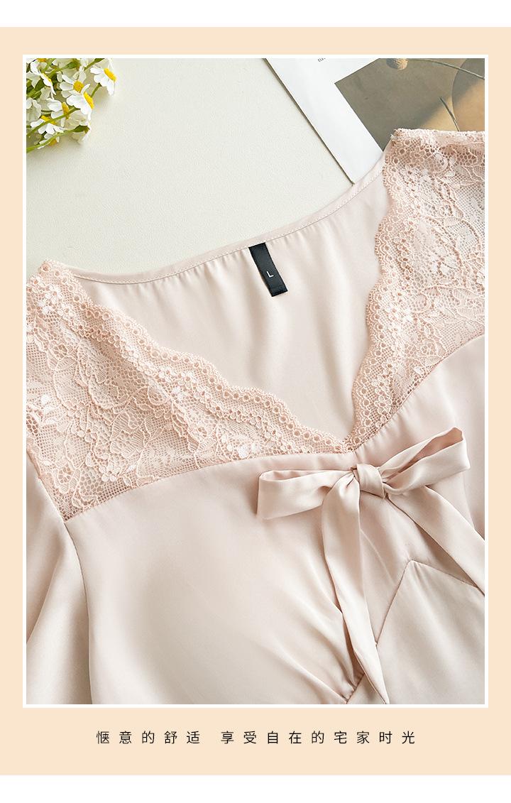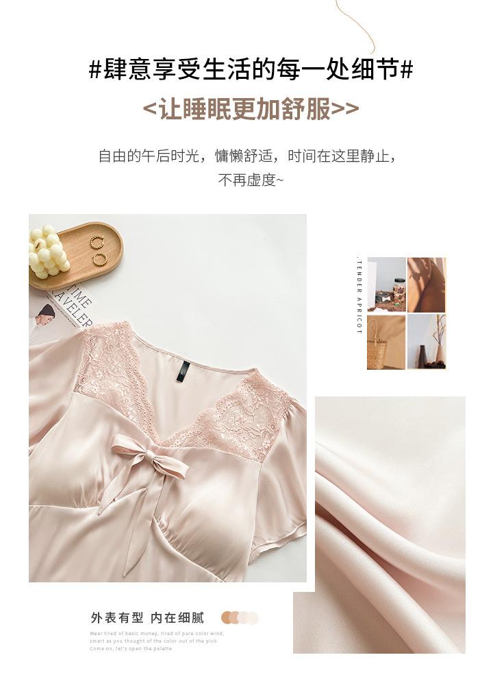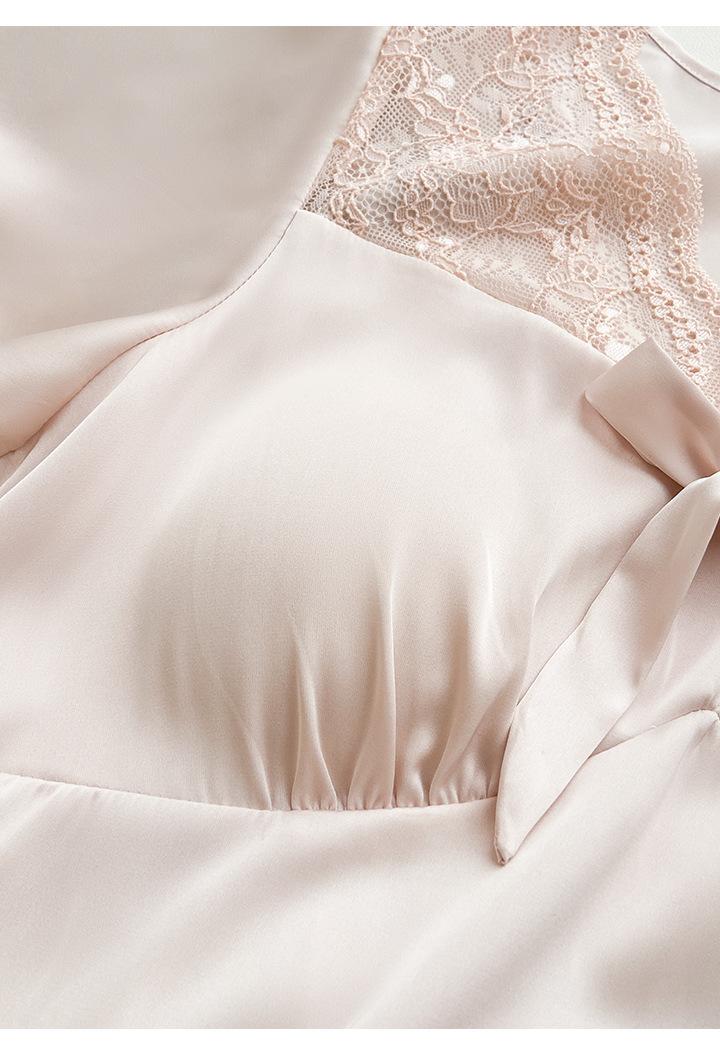 Pijama de corte francés, camisón de encaje de verano de seda de hielo para mujer, vestido de alta gama de estilo dulce para habitación privada sexy de seda