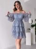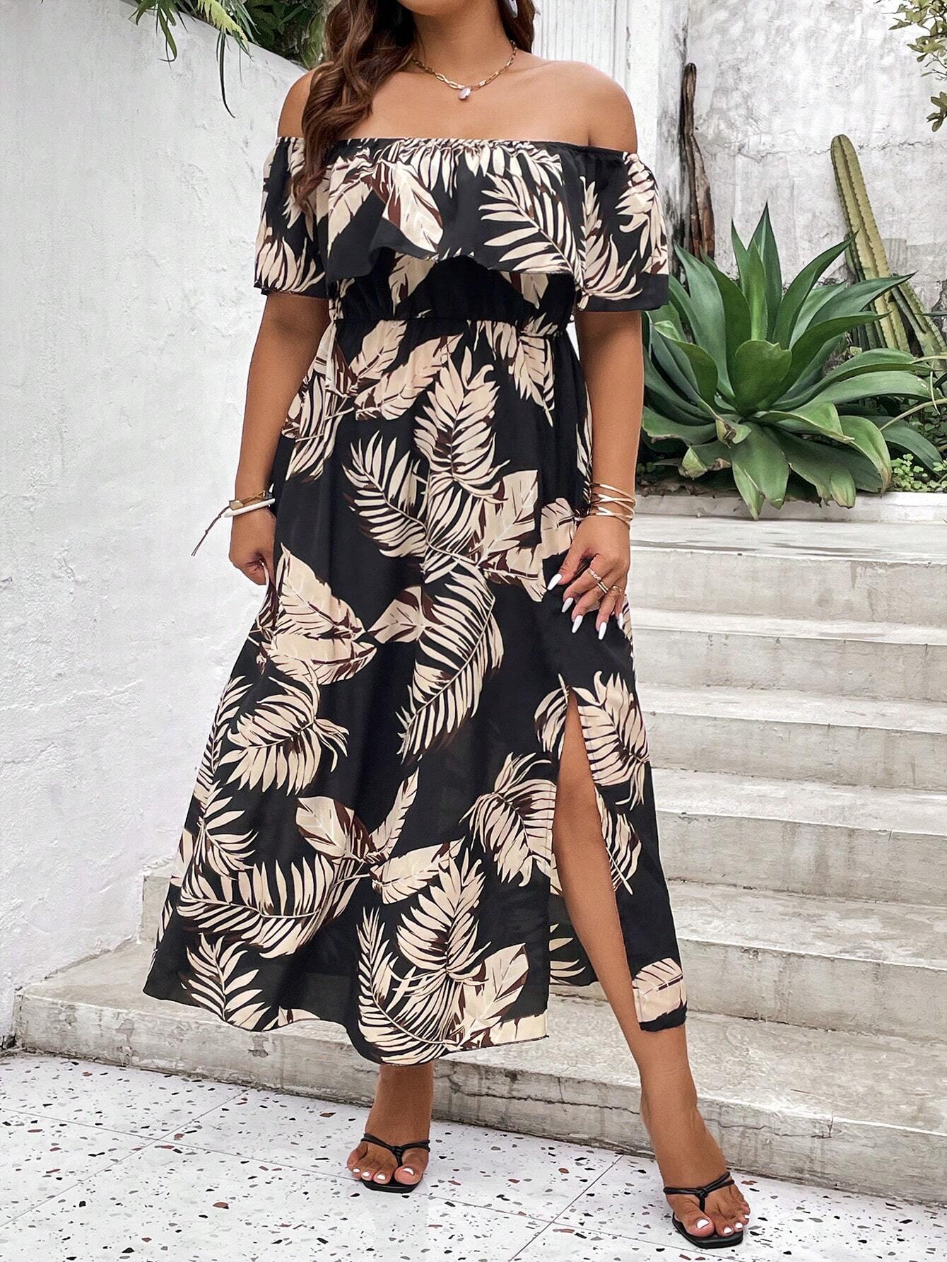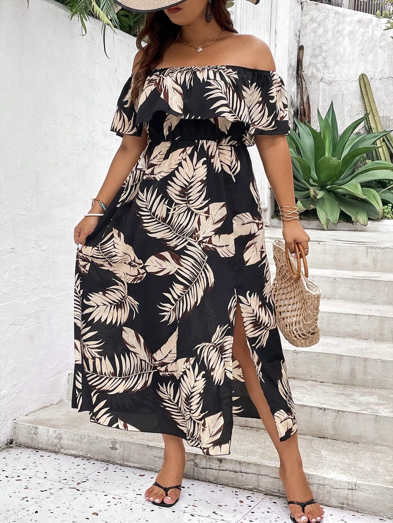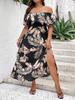 Ropa de mujer de talla grande transfronteriza 2024 Europa y Estados Unidos Amazon nueva explosión vestido estampado de abertura en la cintura con hombros de manga corta