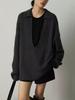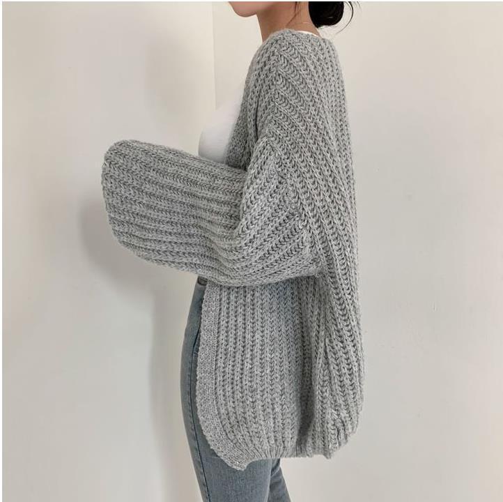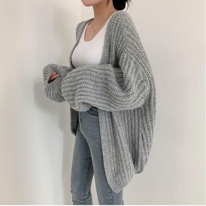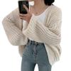 Chaqueta tipo cárdigan de punto con mangas abullonadas, estilo coreano, informal, holgado, versátil, con cuello en V y color liso para otoño