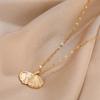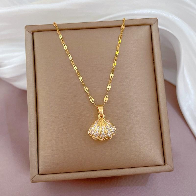 Collar de Perlas Shell de Moda con Incrustaciones de Diamantes Estilo Coreano Collar de Acero Titanio sin Color Joyería de Celebridad de Internet con Colgante Elegante en Forma de Abanico para Mujer