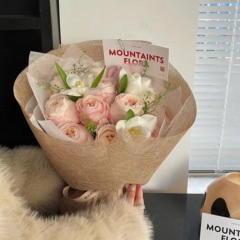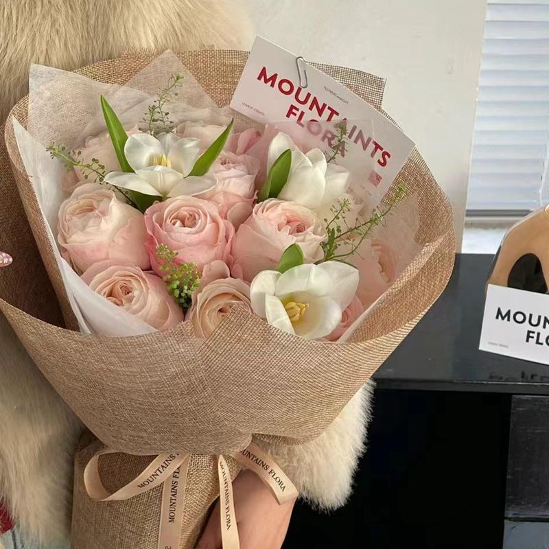 Rollo de cáñamo de color vintage simple, material de lino para embalaje de flores, papel de regalo para ramos de flores, material para floristería