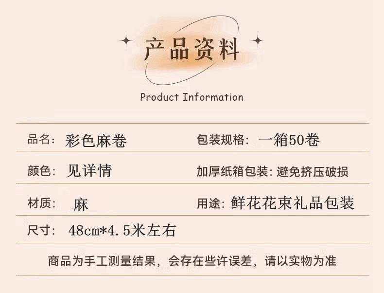 Coffee (48cm* 4.5m ), Transparent opp roll (60cm* 20m ), 1cm ribbon white (1cm*40 yards), Hemp rope (50m /roll...