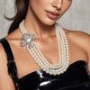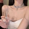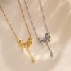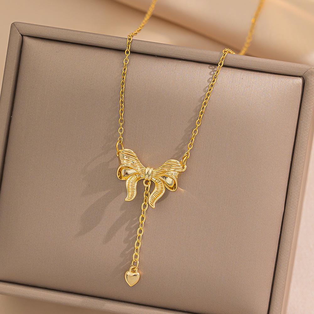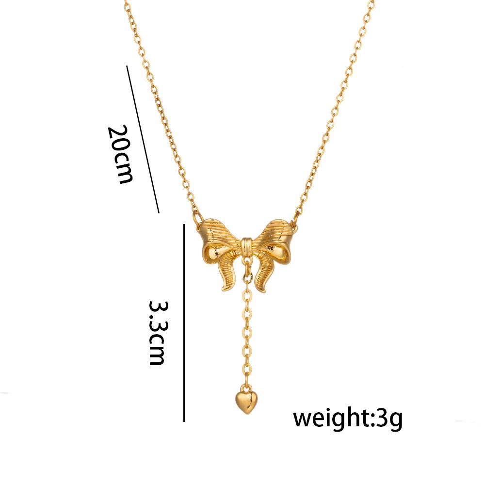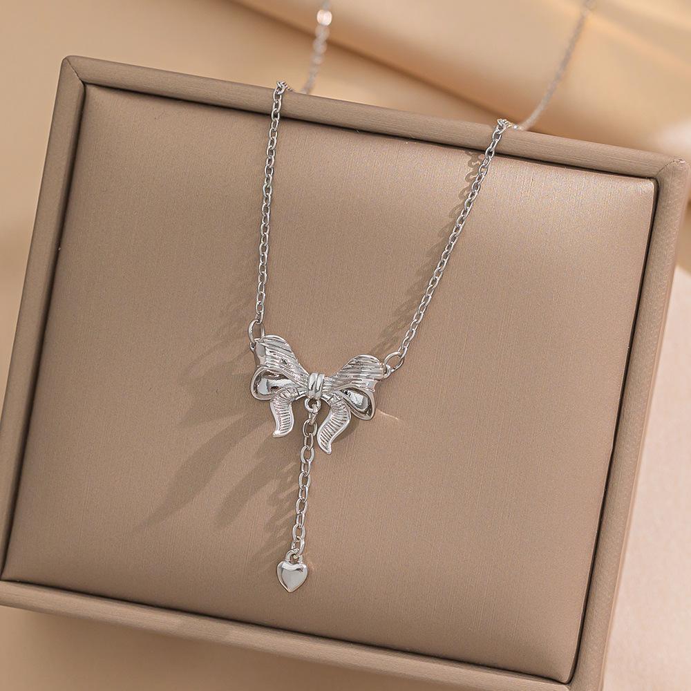 Collar de amor con borla de lazo de material de acero de titanio, artesanía de flores para coche, cadena de clavícula brillante, temperamento de princesa a gran escala, combina con todo