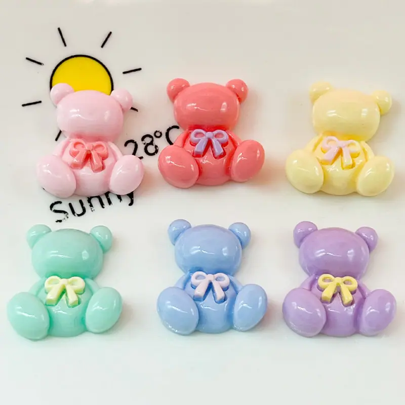 Horquilla de oso con lazo brillante de dibujos animados, pinza para el pelo, funda para teléfono, material para manualidades, crema, pegamento, accesorios de resina, parche