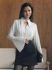 Outono 2024 Branco Sexy Lapela Slim-fit Emagrecimento Camisa de manga comprida Europeu e Americano Design Oco Camisa de Chiffon para Mulheres