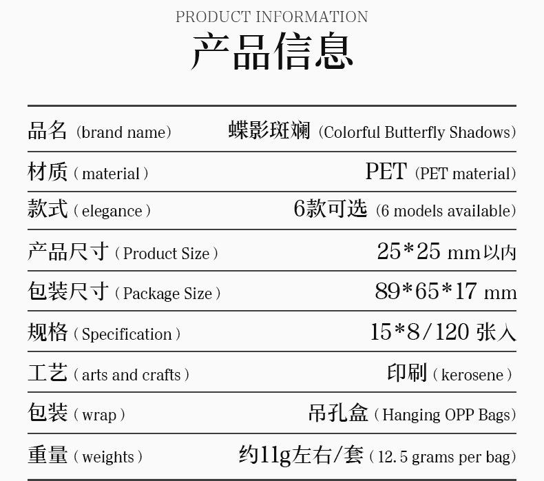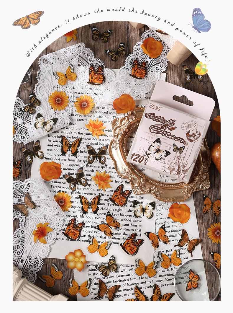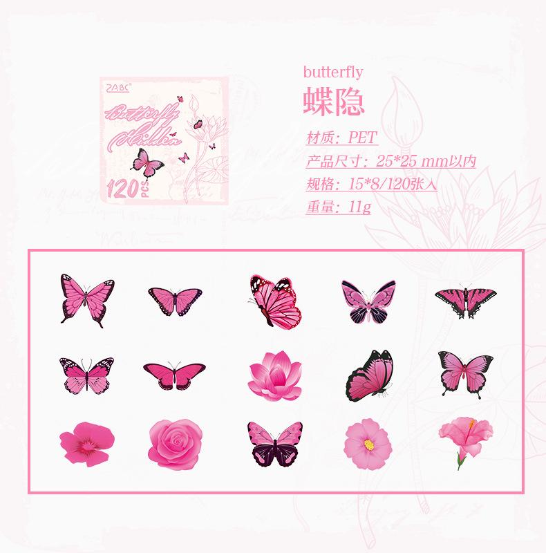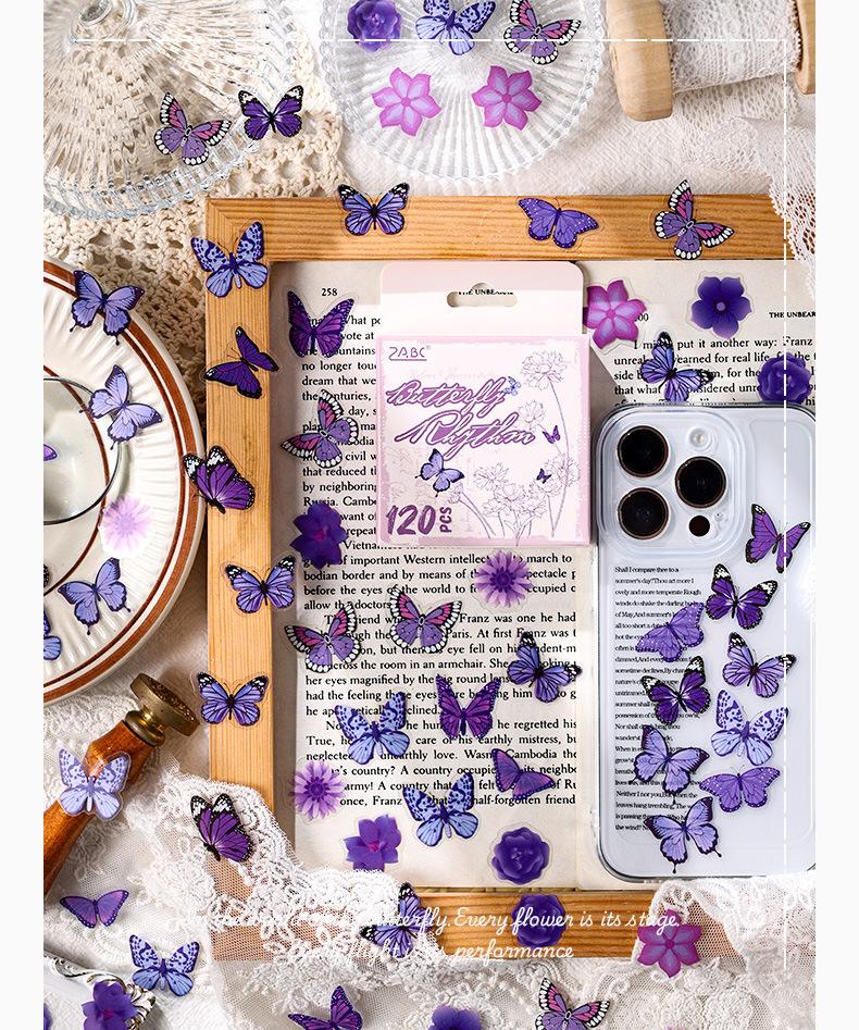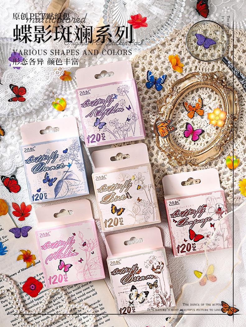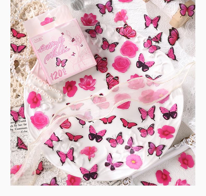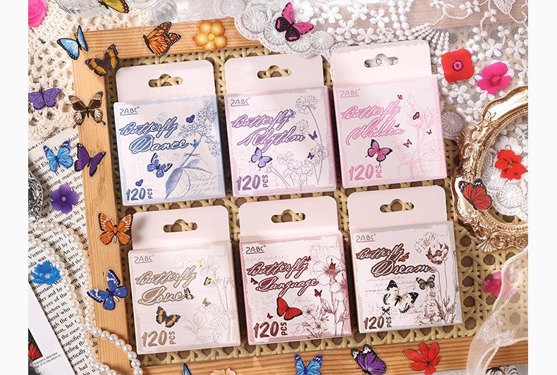 Stickers ZABC transfronterizos en caja serie colorida sombra de mariposa cuenta de mano decoración de mariposa stickers de collage 120 en 6