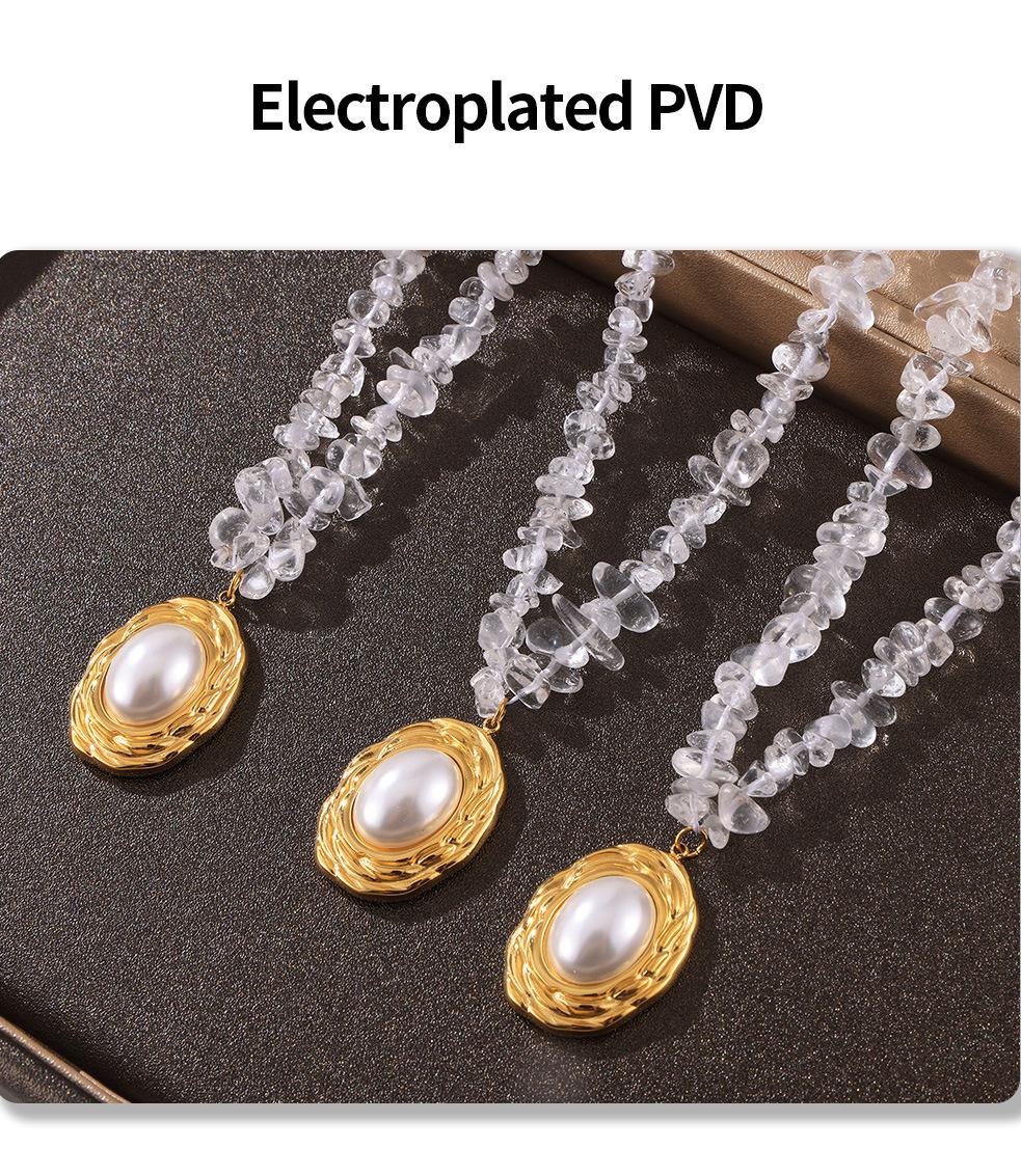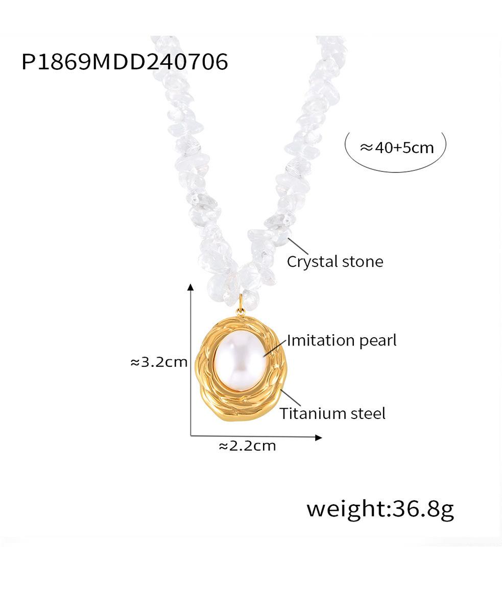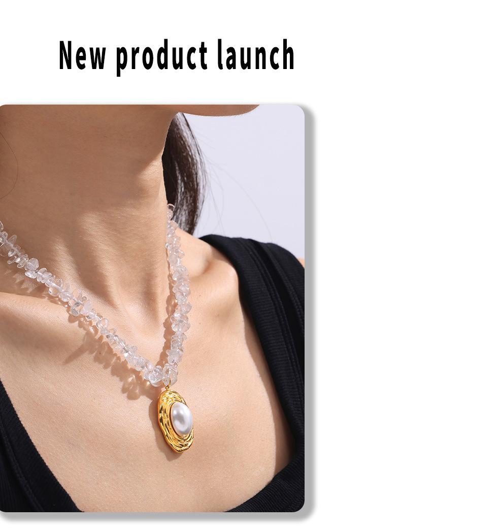 Nuevo colgante transfronterizo de perla de imitación de acero de titanio ovalado, collar de grava de cristal con cadena chapada en oro, joyería ligera de lujo al por mayor