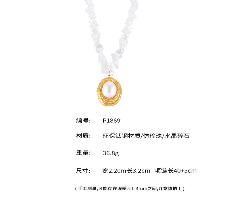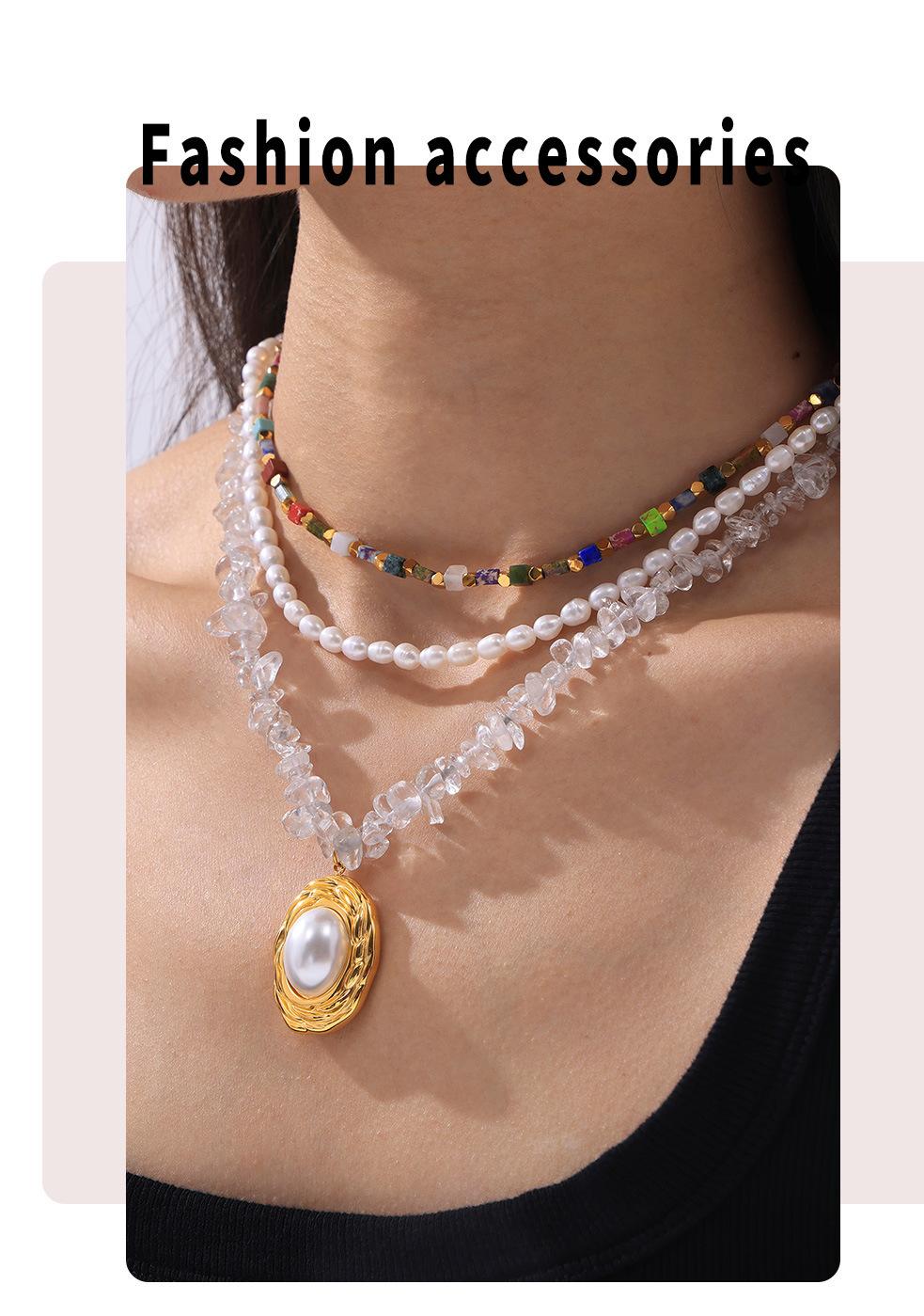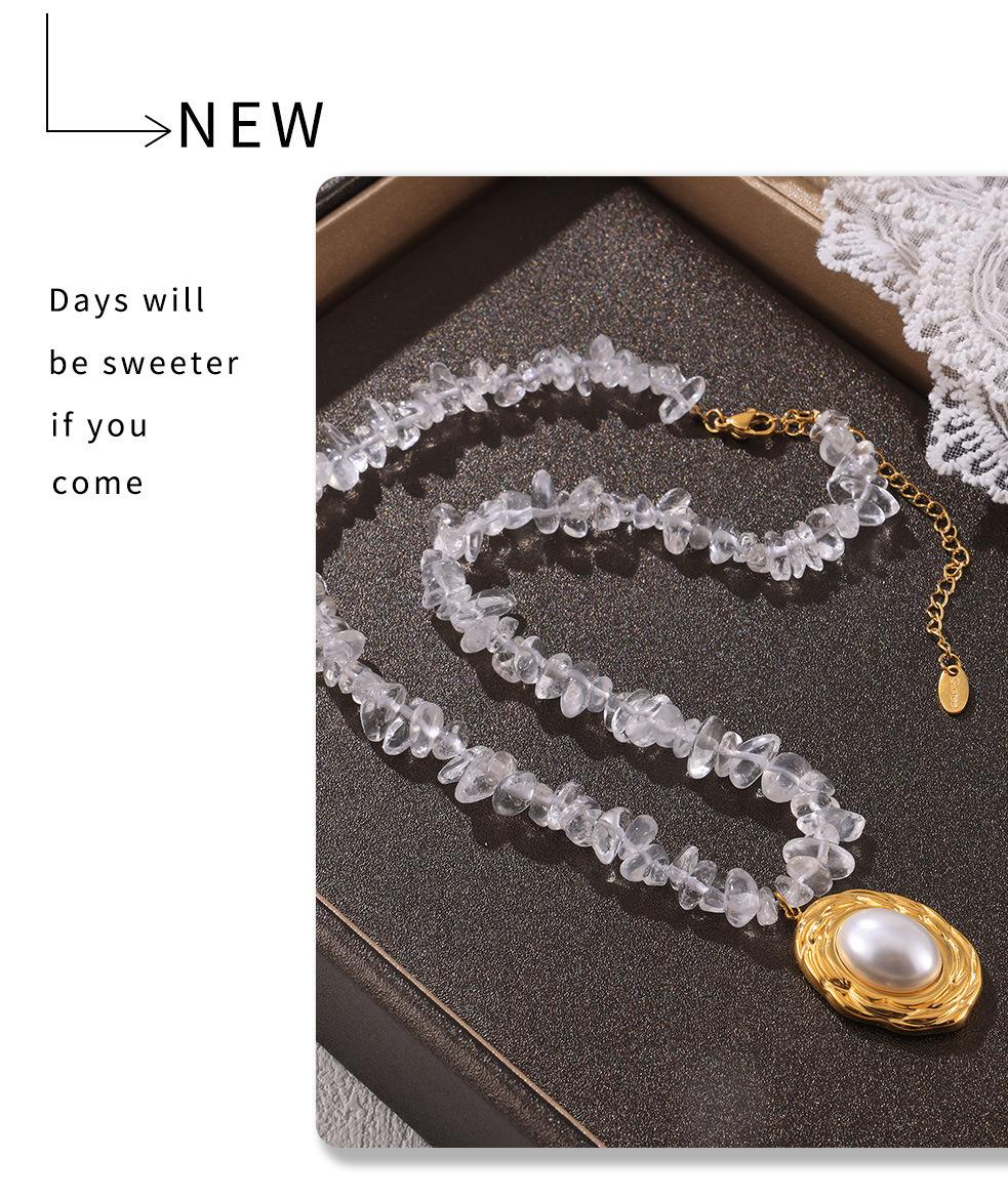 Nuevo colgante transfronterizo de perla de imitación de acero de titanio ovalado, collar de grava de cristal con cadena chapada en oro, joyería ligera de lujo al por mayor