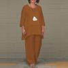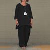 2024 Europeo y Americano Nuevo Moda Casual para Mujer Talla Grande Imitación Algodón y Lino Set de Manga Larga Irregular Conjunto de Dos Piezas Pantalones de Pierna Ancha