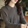 Transfronterizo 2025 Otoño e Invierno Nuevo Suéter Corto Delgado de Cuello Polo para Mujer Camiseta Básica Cárdigan Tejido Top Chaqueta