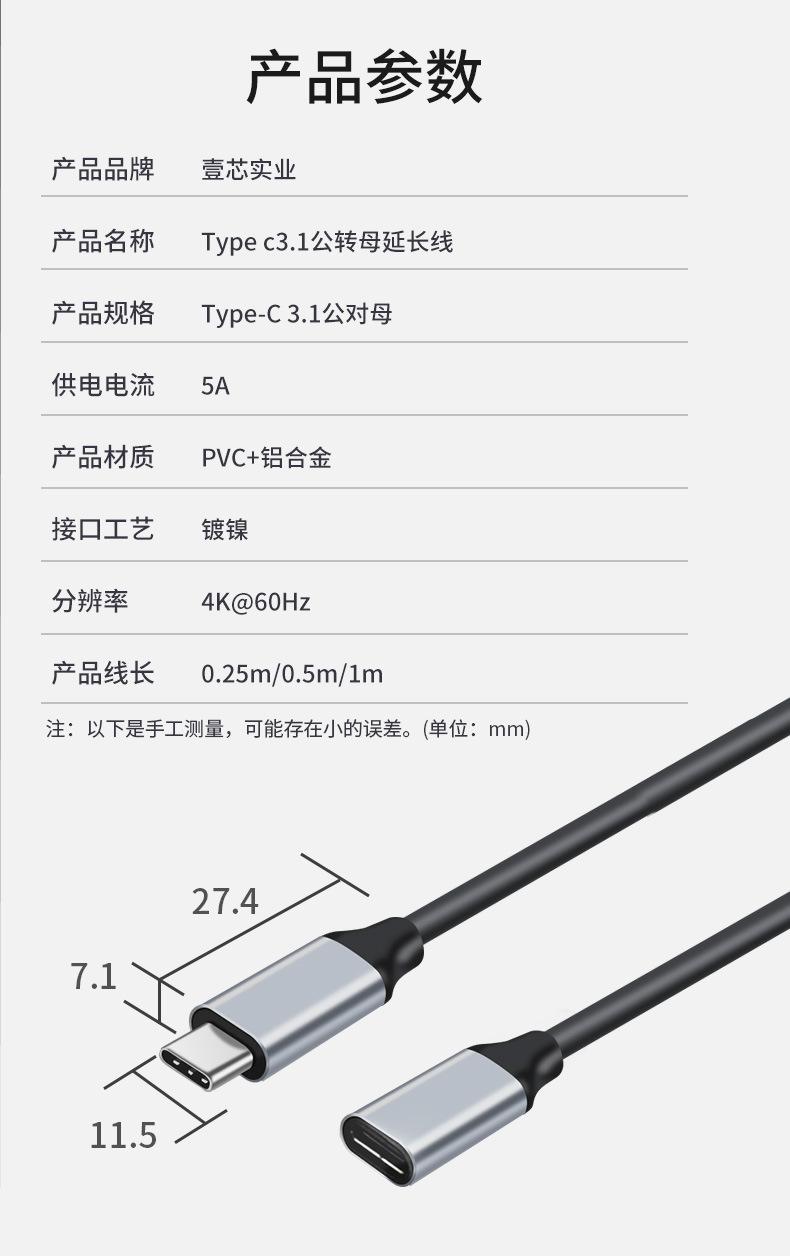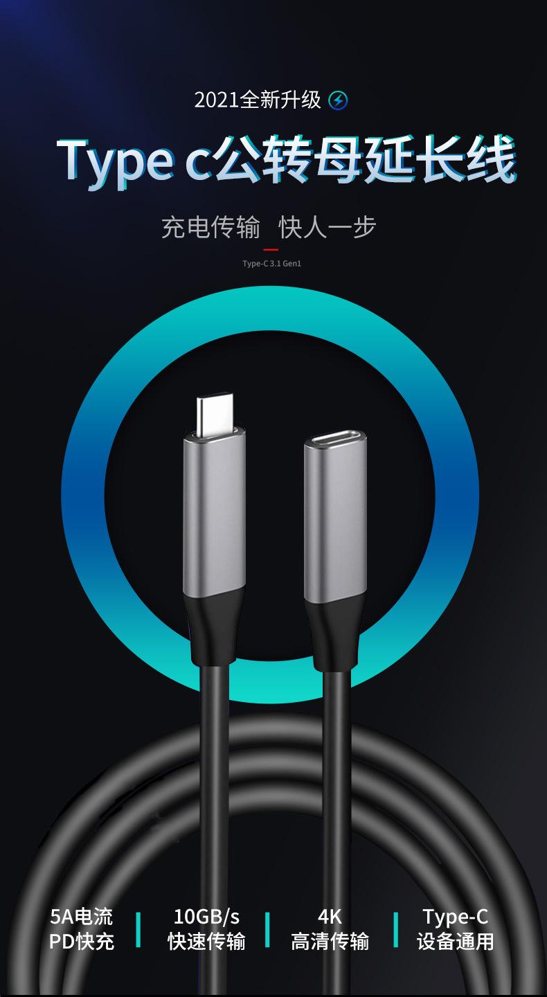 Cable de datos tipo-c3.1 16 núcleos Gen2 audio y video pantalla de proyección 4K 3.1C macho tipo-c hembra cable de extensión