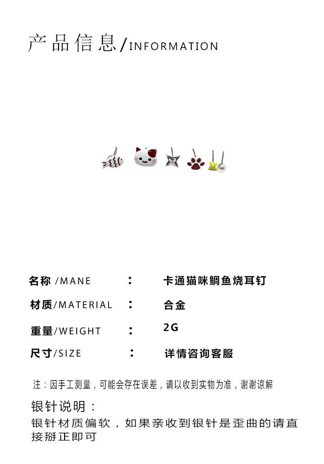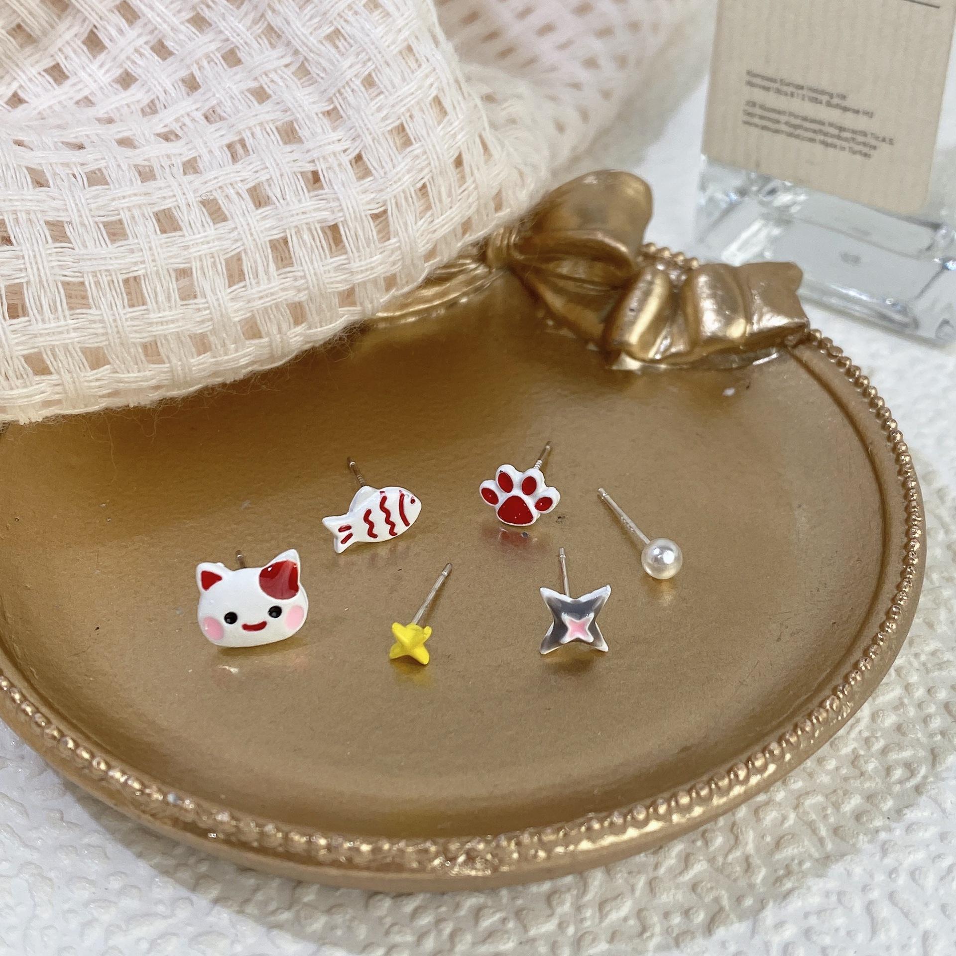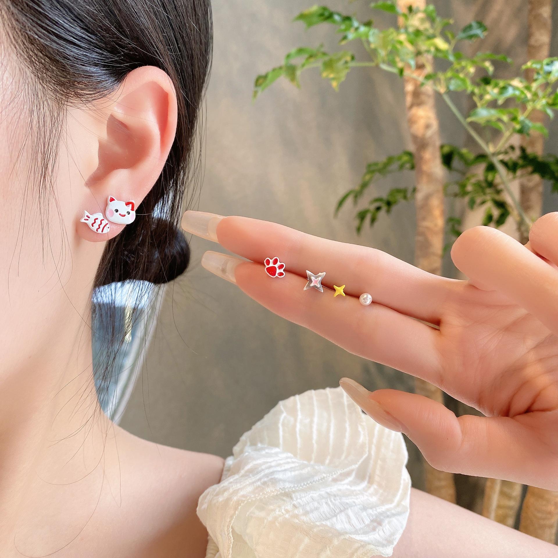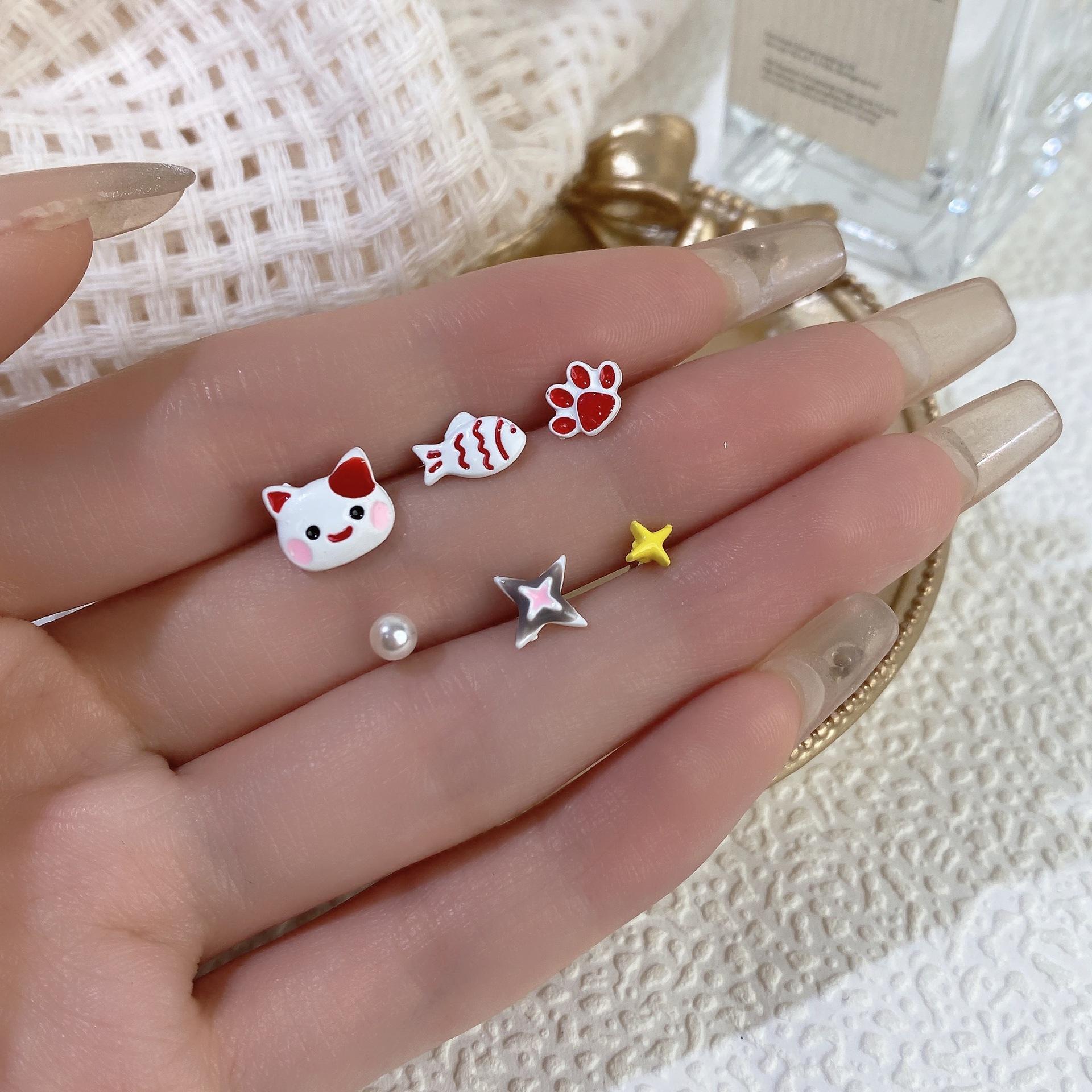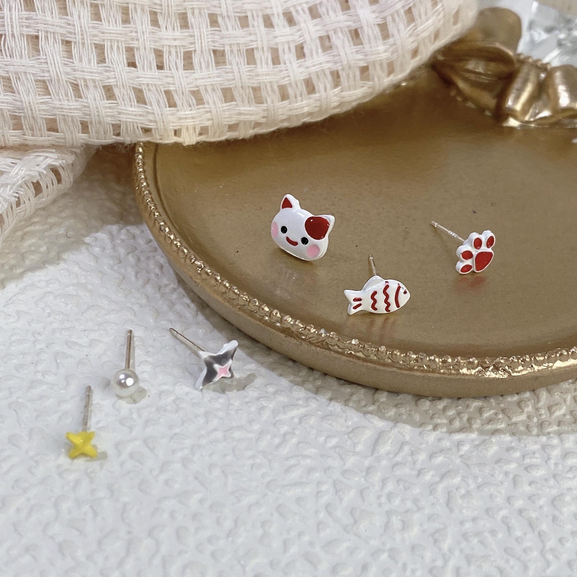 Pendientes de gato de dibujos animados con forma de pargo quemado, combinación de nuevos estilos, pequeños y exquisitos, pendientes de novia para mujer, con uñas de hueso.