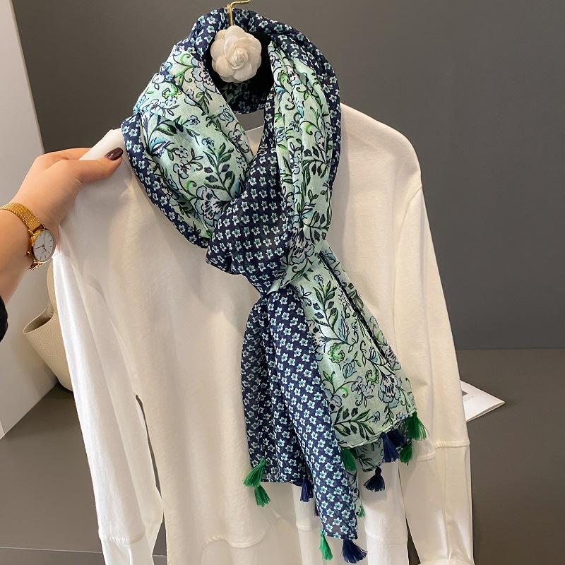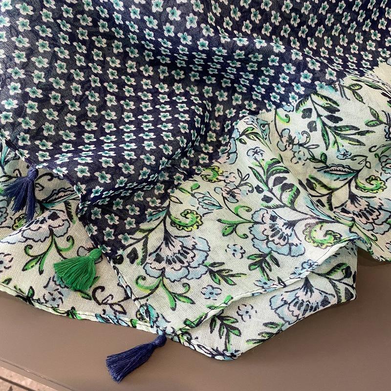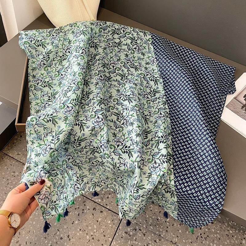 Bufanda de Seda Floral Pequeña de Primavera y Verano Chal Largo con Flecos Protección Solar Bufanda para Aire Acondicionado Bufanda de Gasa Fina de Otoño e Invierno Bufanda de Algodón y Lino