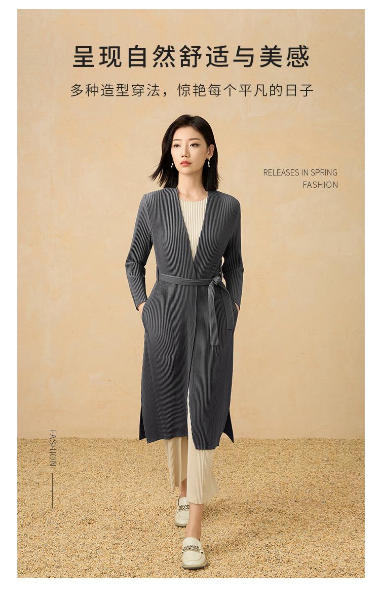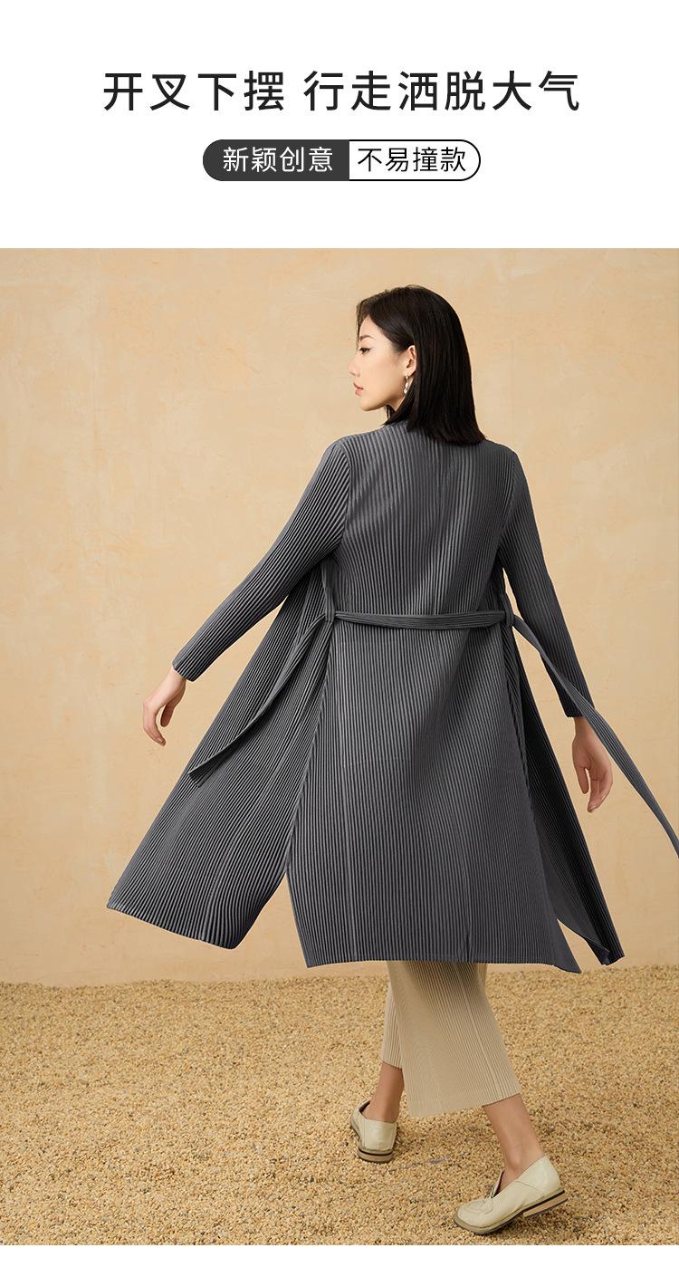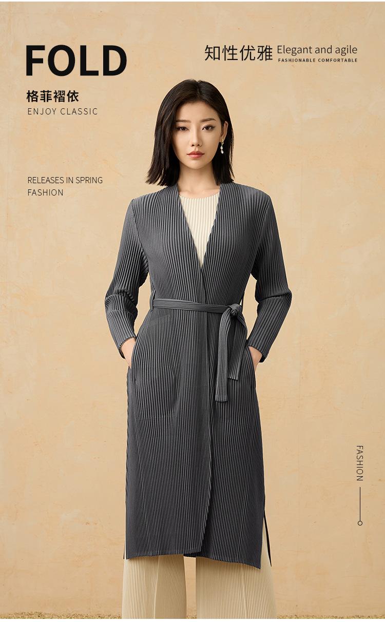 2025 Nuevo Estilo Otoño Gabardina Larga Elegante Elegante a la Moda de Tela Gruesa Plisada de Alta Gama Chaqueta Casual con Cordones