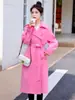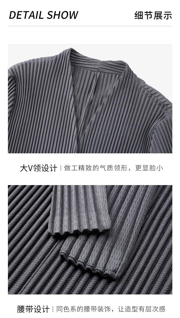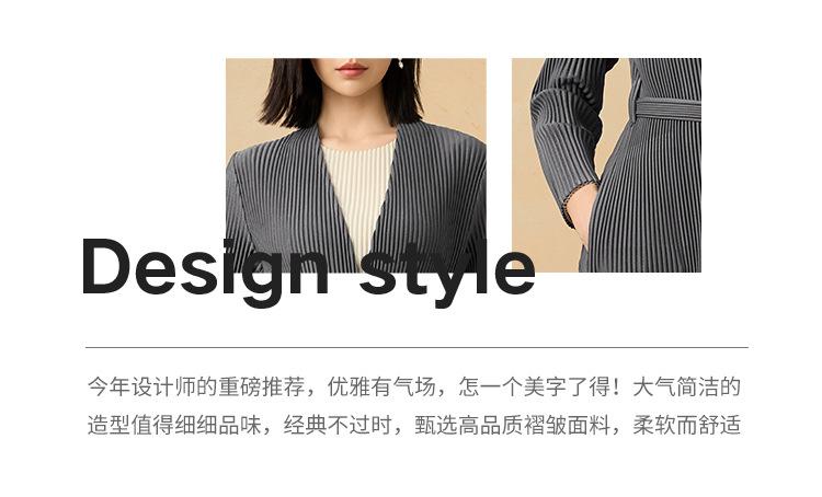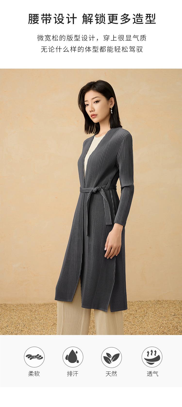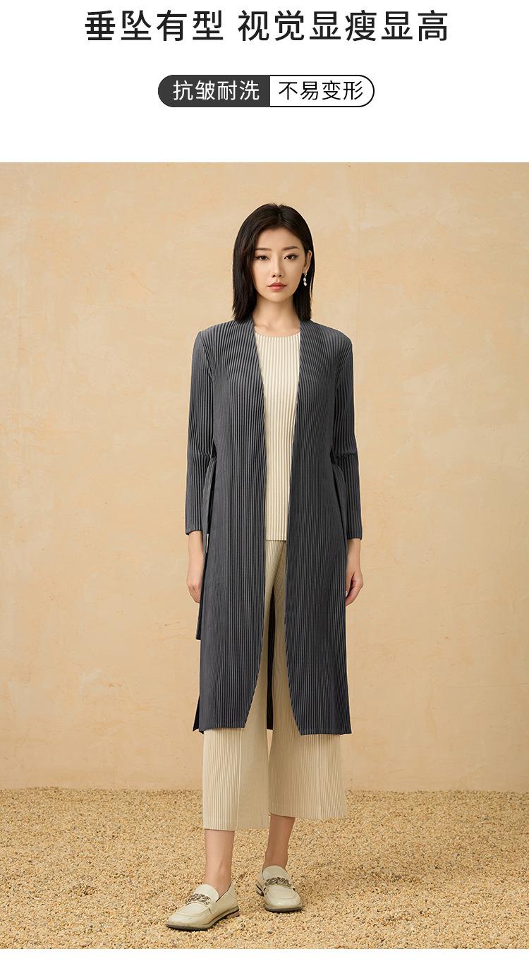 2025 Nuevo Estilo Otoño Gabardina Larga Elegante Elegante a la Moda de Tela Gruesa Plisada de Alta Gama Chaqueta Casual con Cordones