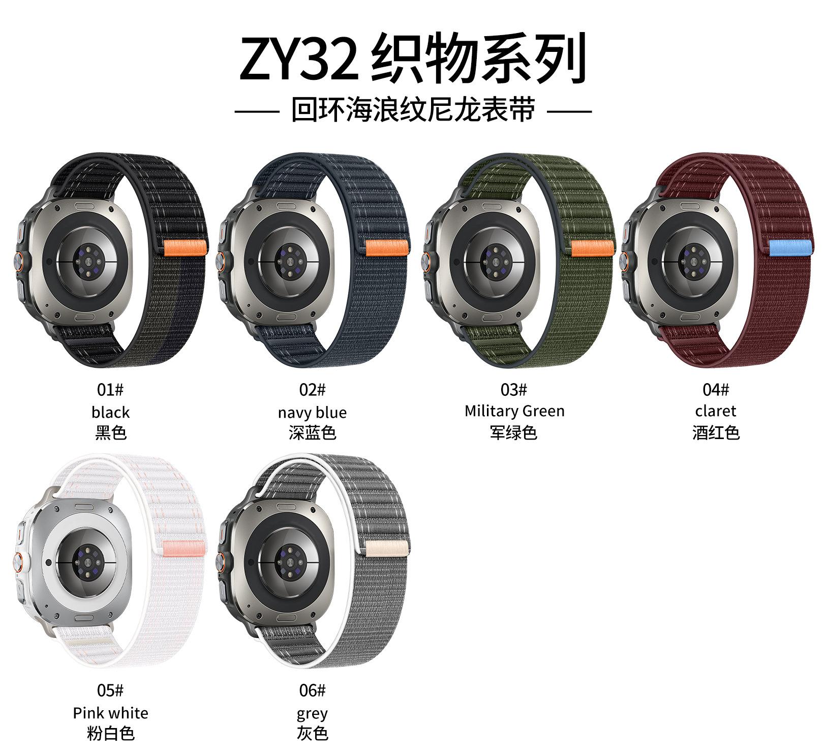 Correa de nailon con diseño ondulado de bucle ZY32 Fabric Series para reloj inteligente Samsung Ultra