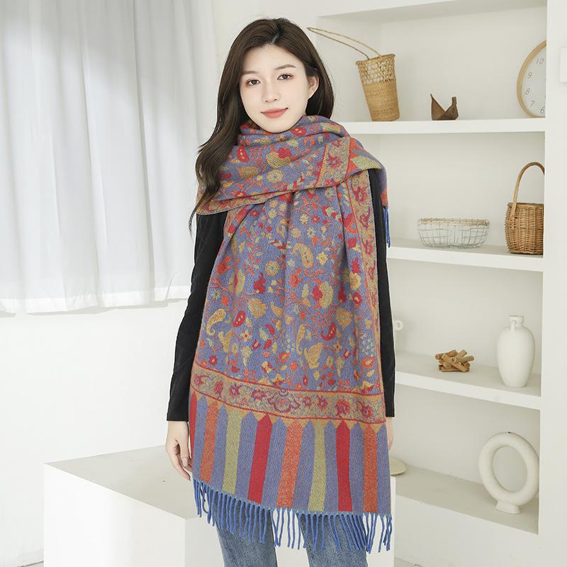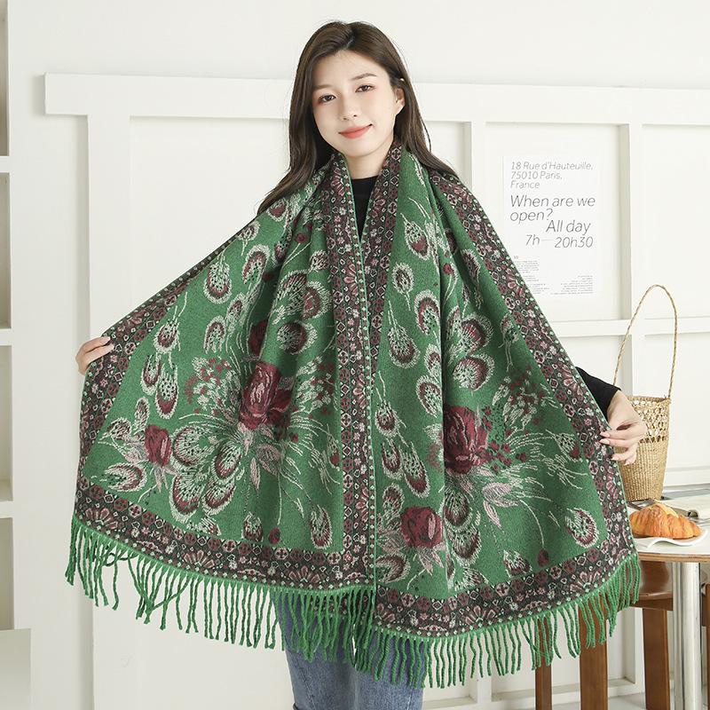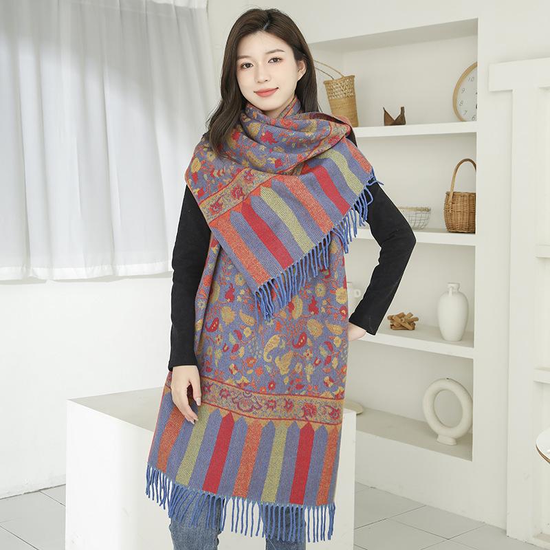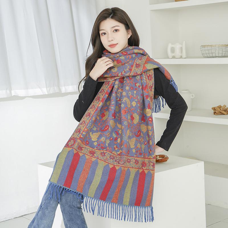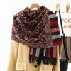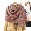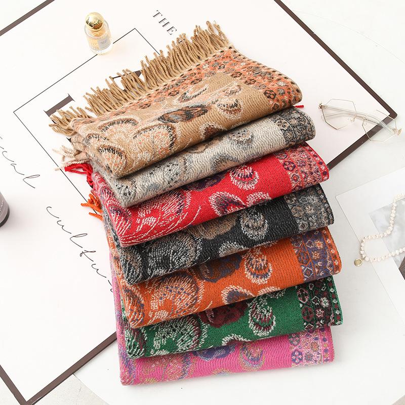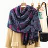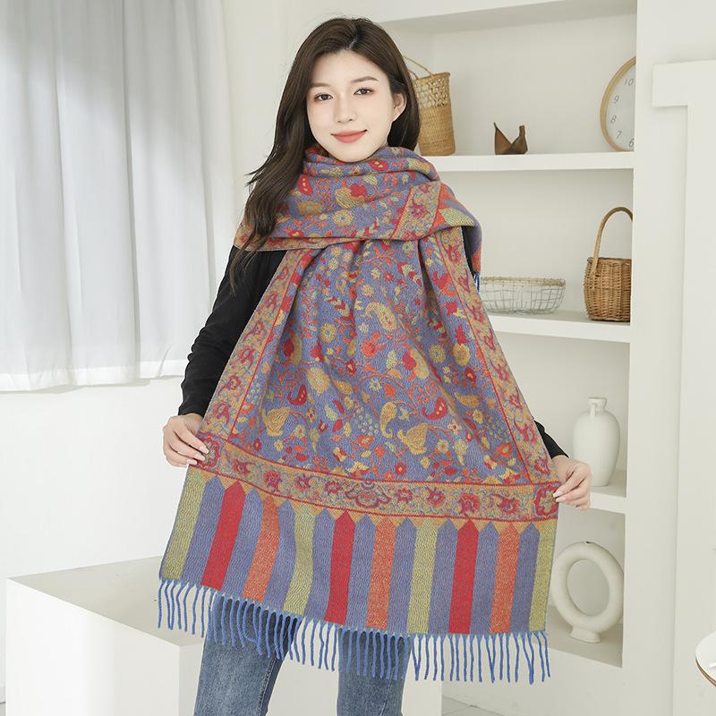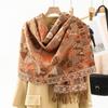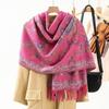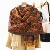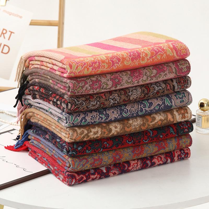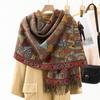 Bufanda de estilo étnico para mujer, de invierno, de imitación de cachemira de alta gama, chal para mujer con borlas, bufanda vintage de jacquard.
