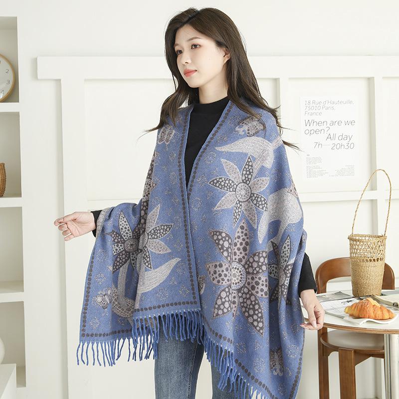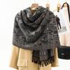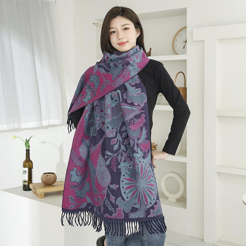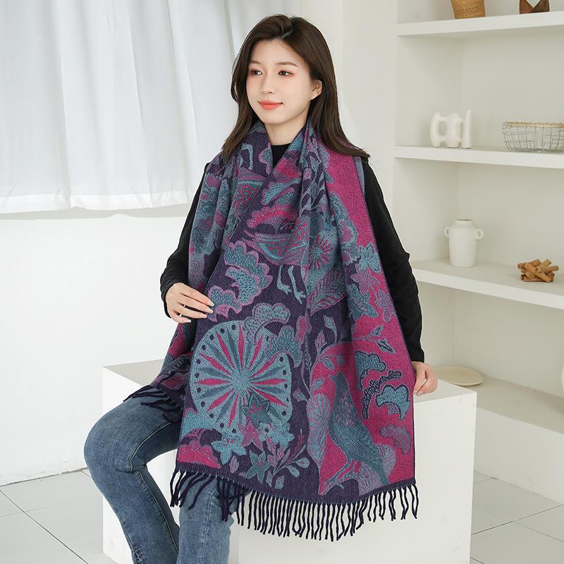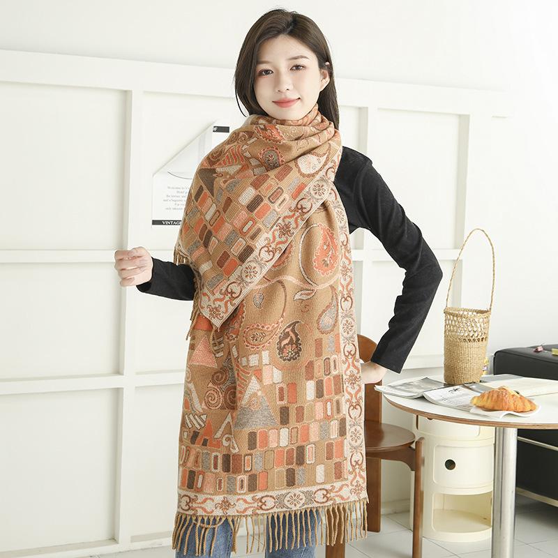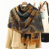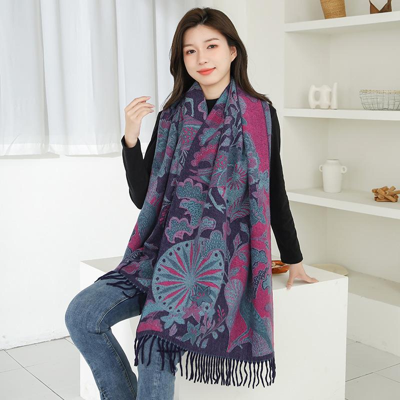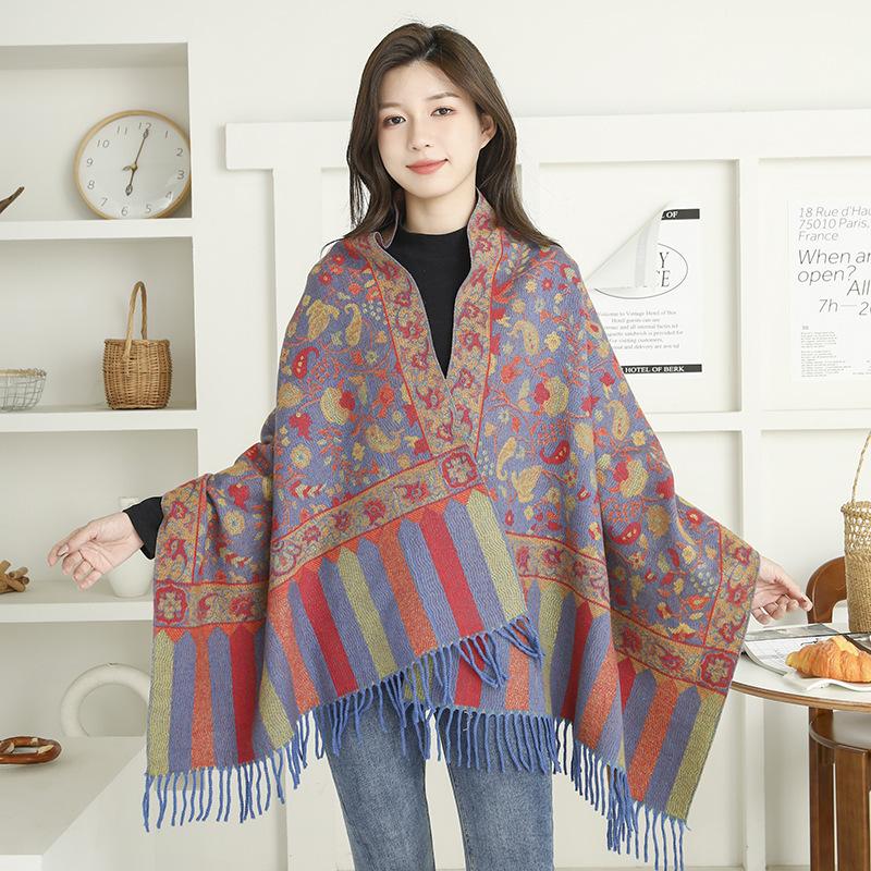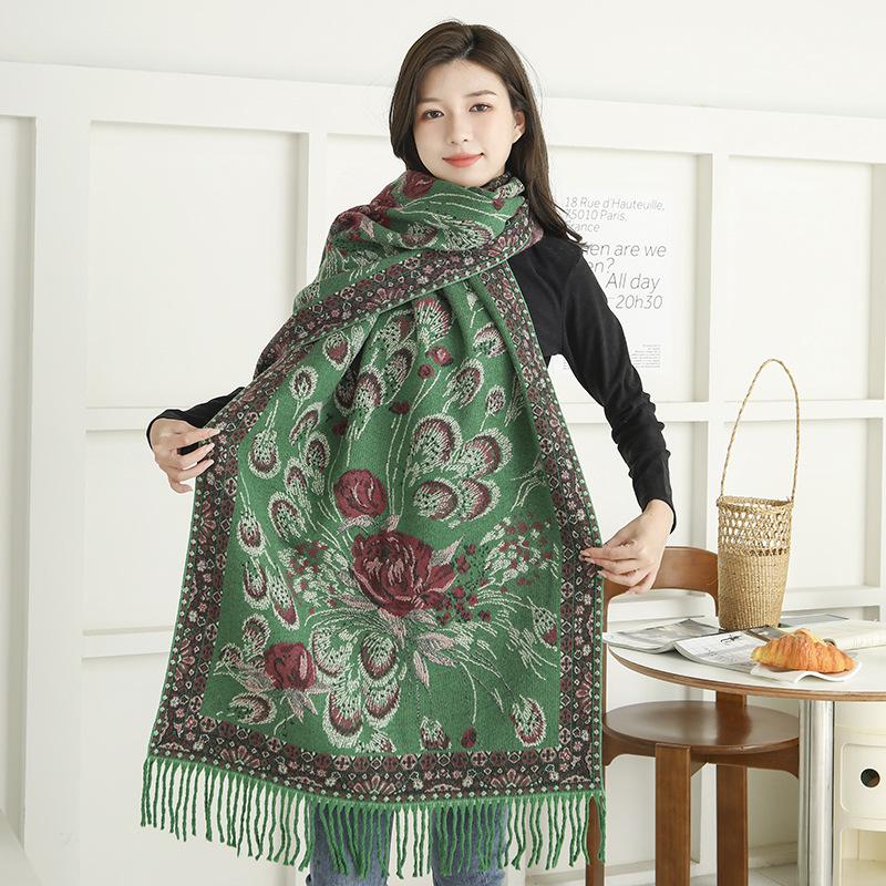 Bufanda de estilo étnico para mujer, de invierno, de imitación de cachemira de alta gama, chal para mujer con borlas, bufanda vintage de jacquard.