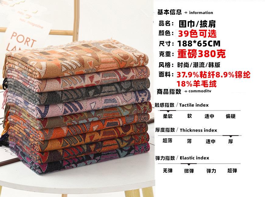 Tonglu scarf 2024 autumn and winter new jacquard scarf cashmere wool scarf plush autumn and winter scarf wool ...
