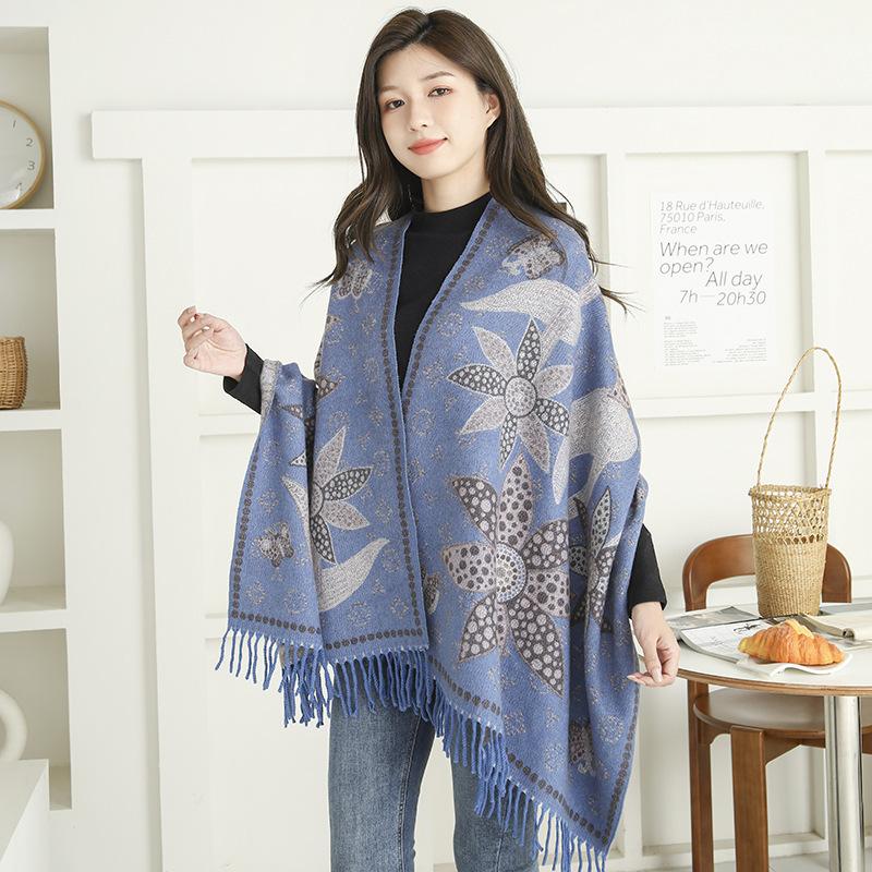 Multifunctional large scarf and shawl dual-purpose jacquard shawl for women retro antique shawl petals floral ...