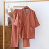 Pijama de pareja para primavera y verano, cárdigan tipo kimono de manga corta de algodón, informal, holgado, estilo japonés, para niños y niñas.