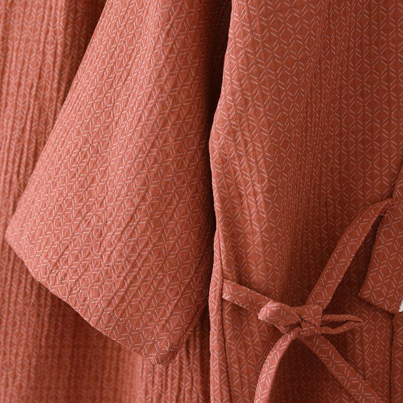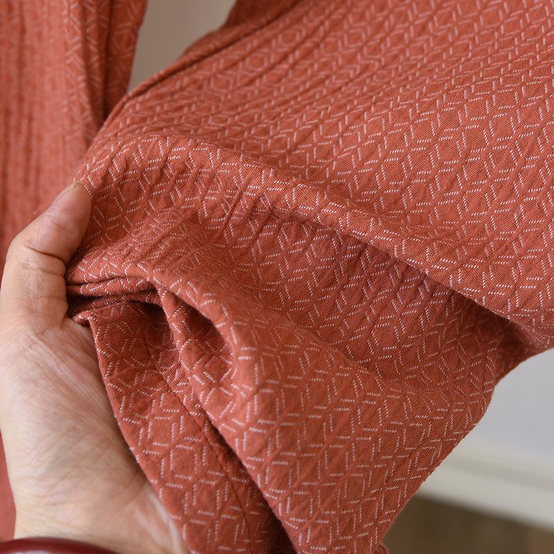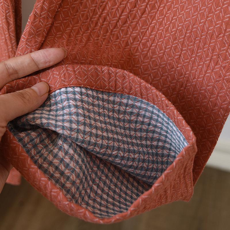 Yarn-dyed rhombus female kimono set-coral red, Yarn-dyed rhombic men's kimono set-lilac gray