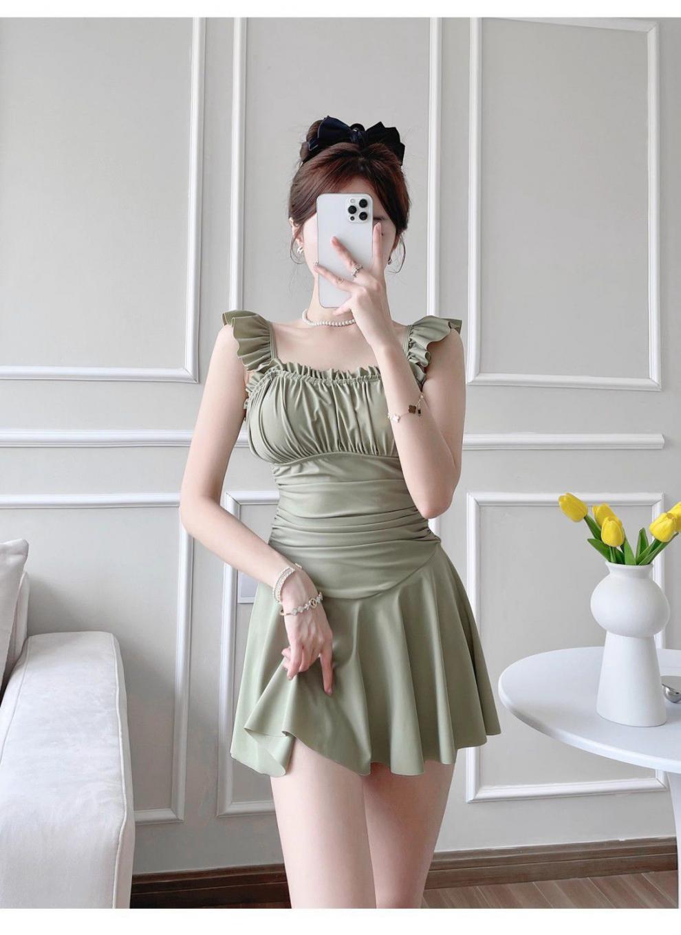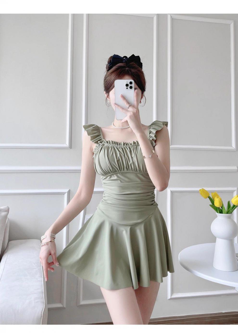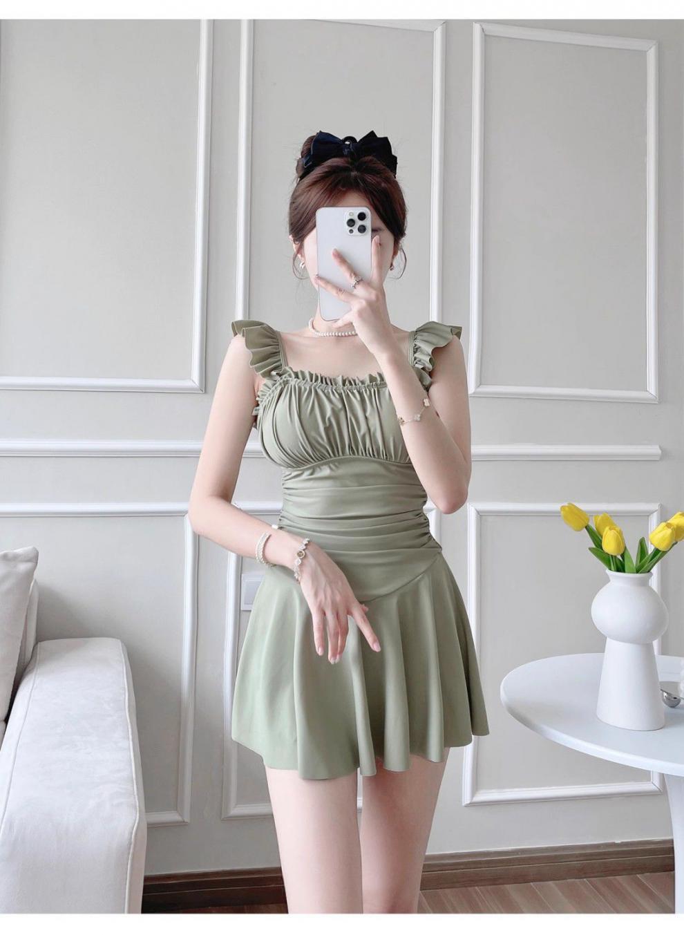 Traje de Baño Nuevo 2024 para Mujer Diseño Explosivo de Aguas Termales Ajustado Cubriente Conservador de Una Pieza Dulce Sensación de Chica Fresca