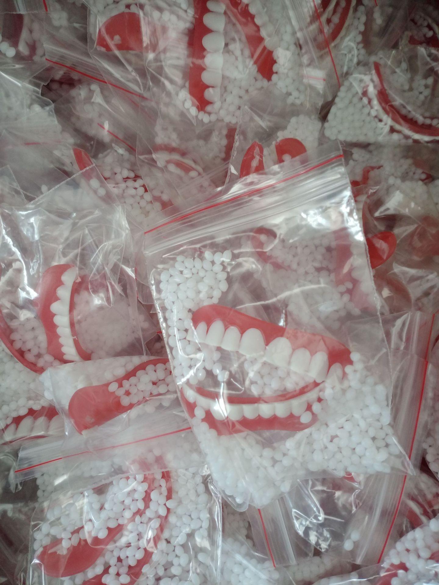 El método de uso es poner el adhesivo dental en agua tibia para derretirlo y ablandarlo, luego pegarlo primero en la dentadura postiza y después adherirlo a los dientes humanos. Aunque este tipo de dientes se puede usar repetidamente, por higiene y salud, se recomienda especialmente para un solo uso, y por favor no usarlo de forma cruzada.